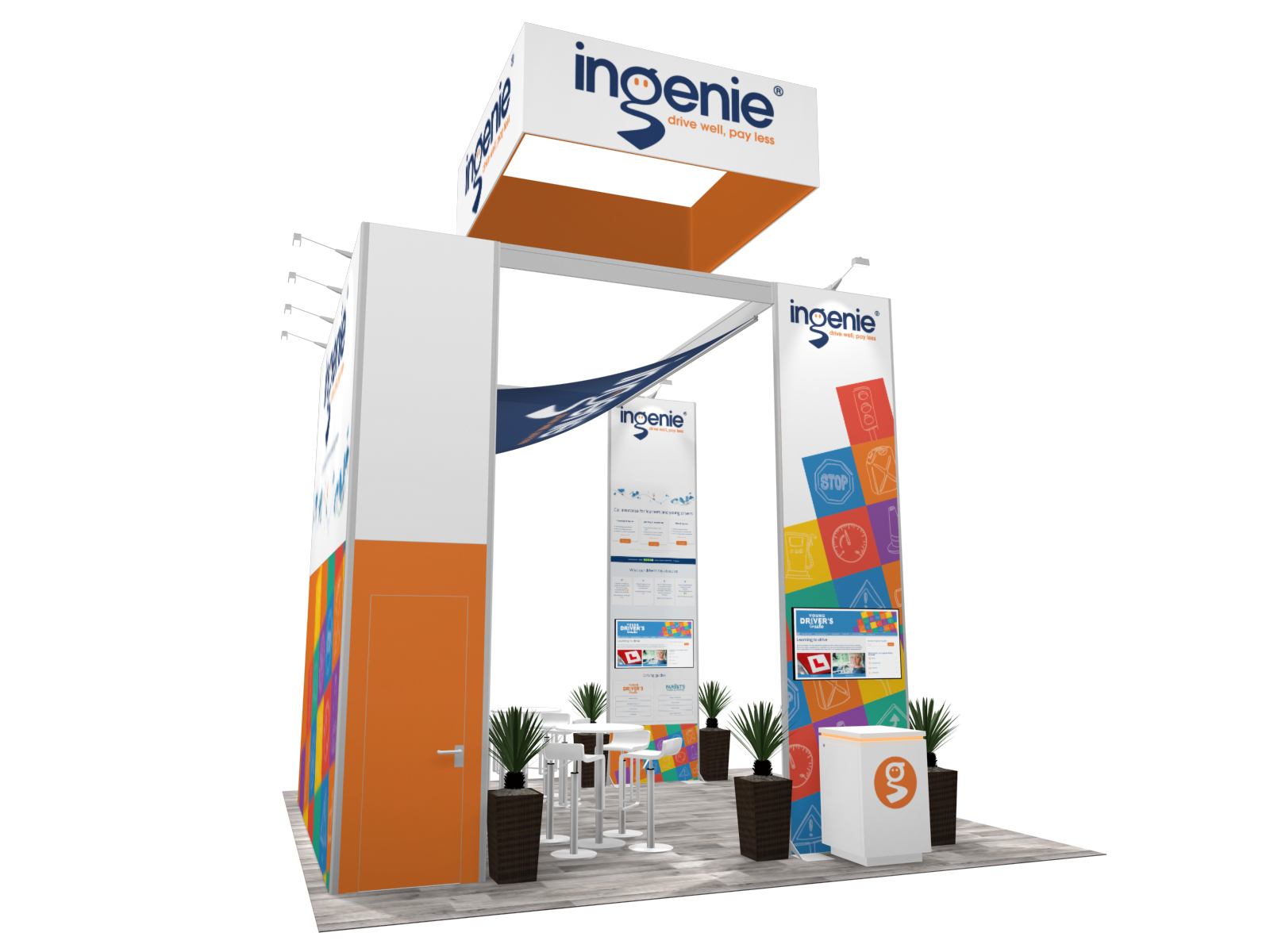 The Rental Island Exhibits go way beyond a pretty picture. We've incorporated key features such as large graphics, private and semi-private conference rooms, towers with locking storage access, and workstations and reception counters with secure storage. Not enough? Then add product shelves, large and small monitors for presentations, a variety of light fixtures, and hanging signs for high visibility from anywhere on the show floor. We also offer three contemporary double-deck configurations.