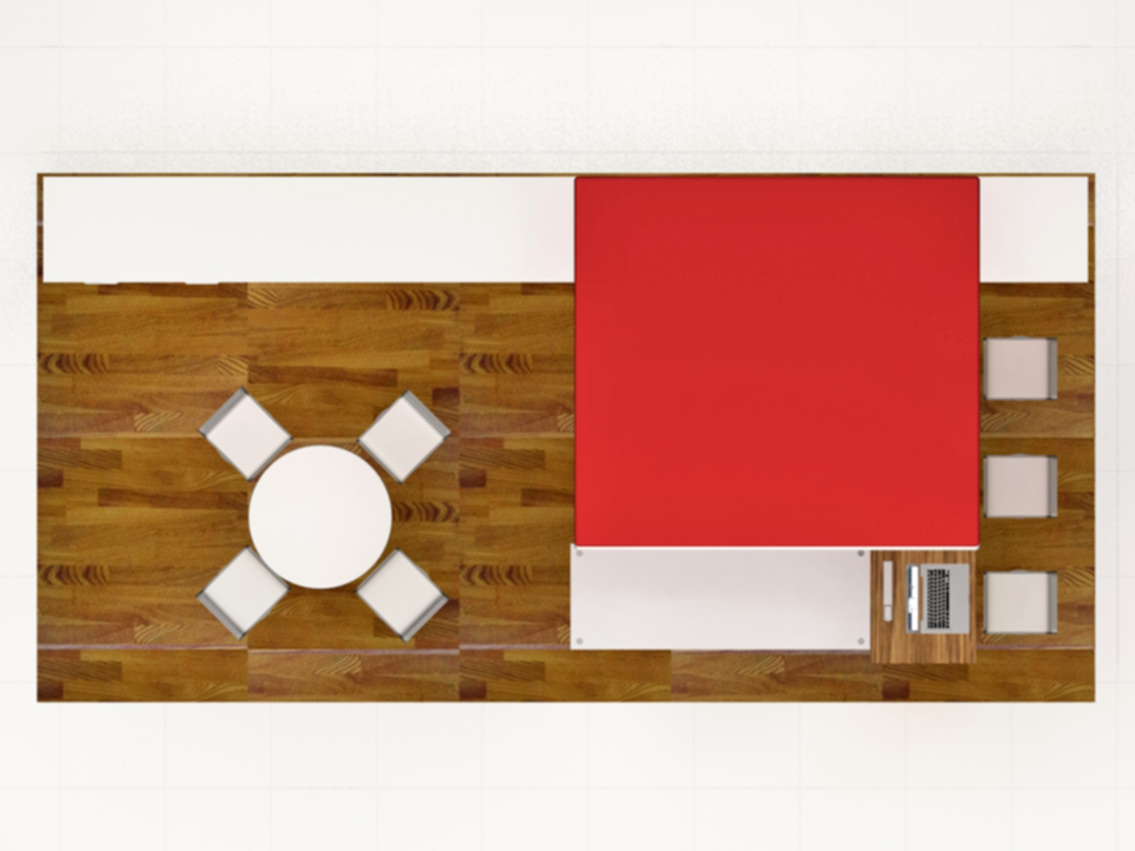 • (1) Custom Reception Counter with Locking Storage and Raised Plex Top (80" W x 24" D x 39" H)