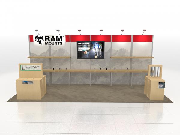 • (1) 20 ft. Backwall with Removable Graphics and Custom Product Shelves