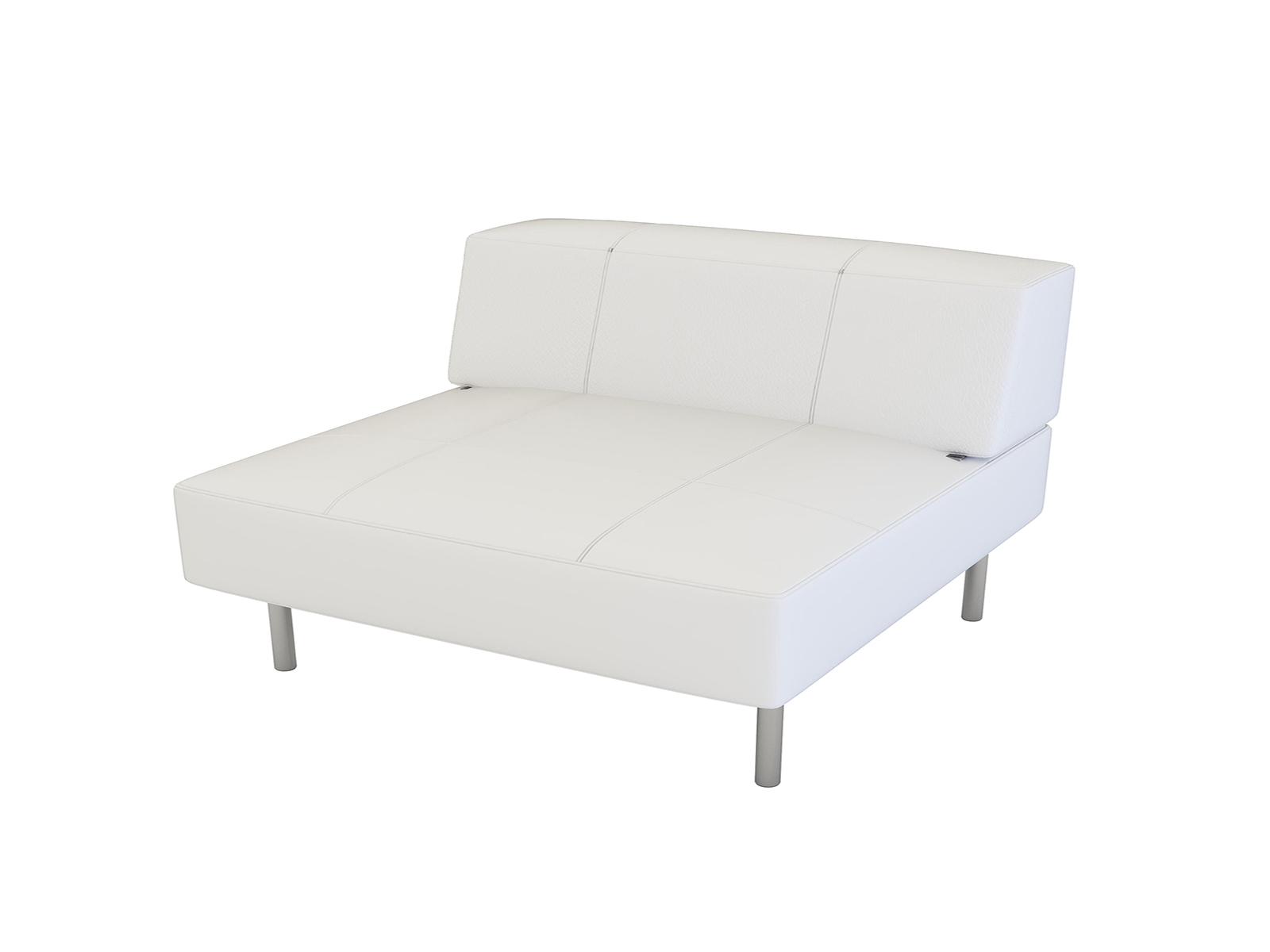 Modular white vinyl low back chair with chrome legs. Size = Length 34 ", Depth 34.5' , Height: 27".