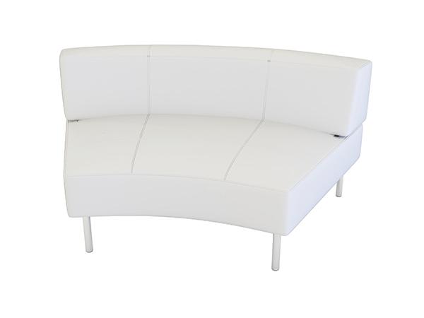 Curved Rental Sofa -- Trade Show Rental FurnitureModular white vinyl large concave curve low back chair with chrome legs. Size = Length 60.5 ", Depth 38.5' , Height: 27".