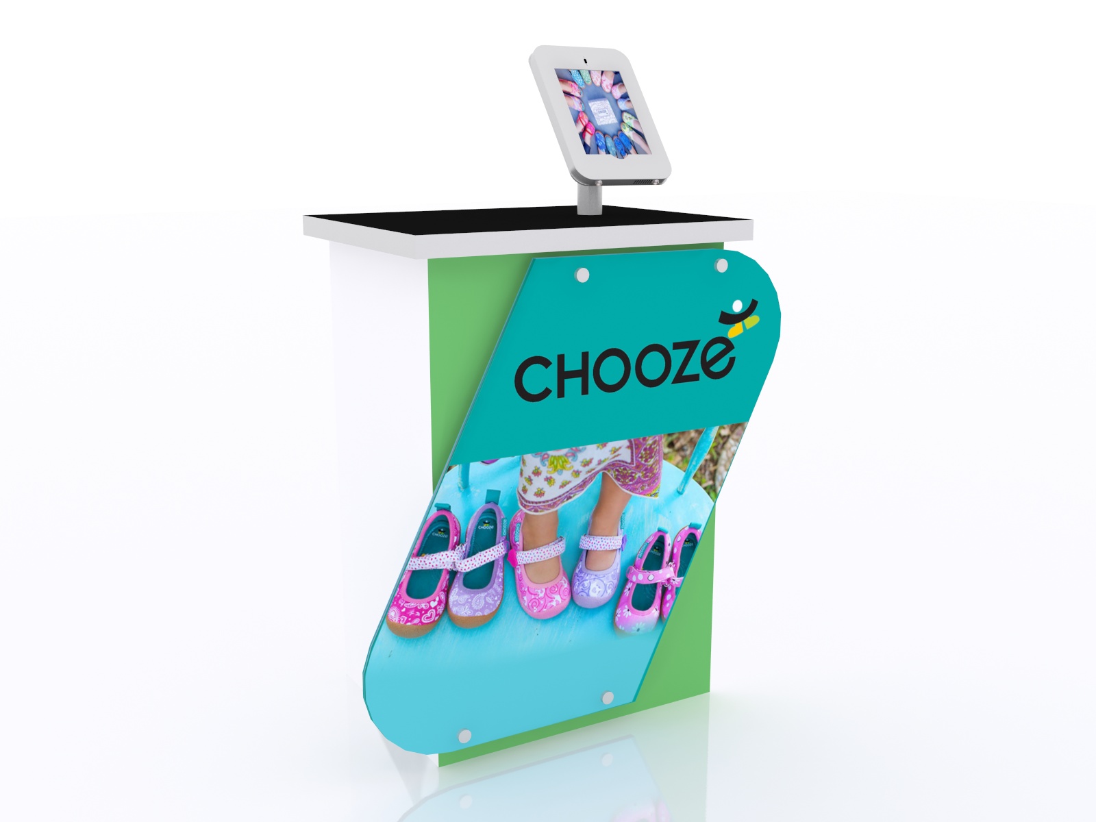 When choosing the right counter or pedestal for your display, consider how you will use it on the show floor. Do you need locking storage? Will the counter or pedestal hold a lead retrieval machine, laptop, or other electrical device? If so, you will need wire management. That may be as simple as ordering a grommet for the counter. If you are planning to use a tablet computer, consider the tablet insert option for the counter top. This option is practical, attractive, and secure for many tablets, such as an iPad.