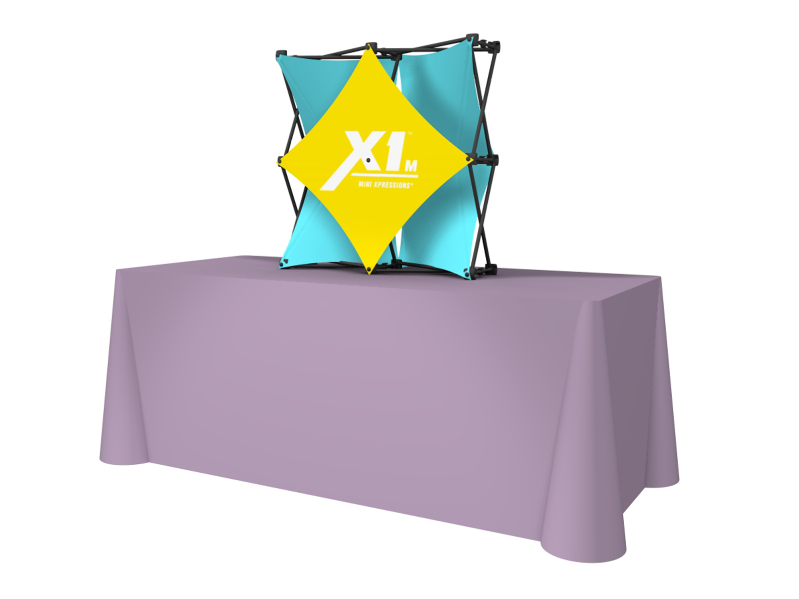 X1 5 ft. -- 2x2 B Fabric Table Top Pop-Up DisplayThe X1m Display is a versatile no tools stretch fabric pop-up display system. Available designs and custom display options bring excitement and flexibility to your exhibit. The X1m is easy to setup, ultra lightweight and portable and even easier to take down. Be off to your next appointment or relaxing while the competition is still sweating through the exhibit break down process.