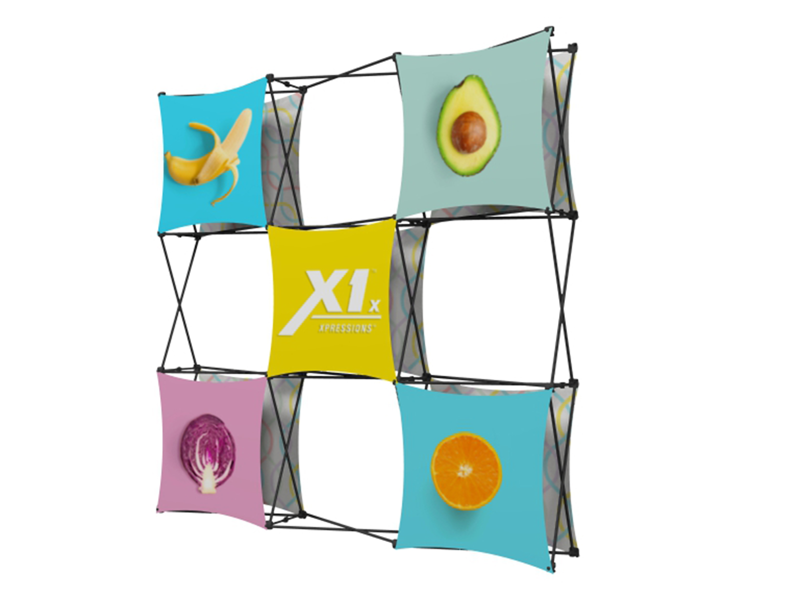 X1 8 ft. -- 3x3 J Fabric Pop-Up Display -- View 2The X1 Display is a Versatile No Tools Stretch Fabric Pop-up Display System. Available Designs and Custom Display Options Bring Excitement and Flexibility to Your Exhibit. The X1 is Easy to Setup, Ultra-lightweight and Portable and Even Easier to Take Down. Be off to Your Next Appointment or Relaxing while the Competition is Still Sweating Through the Exhibit Breakdown Process.