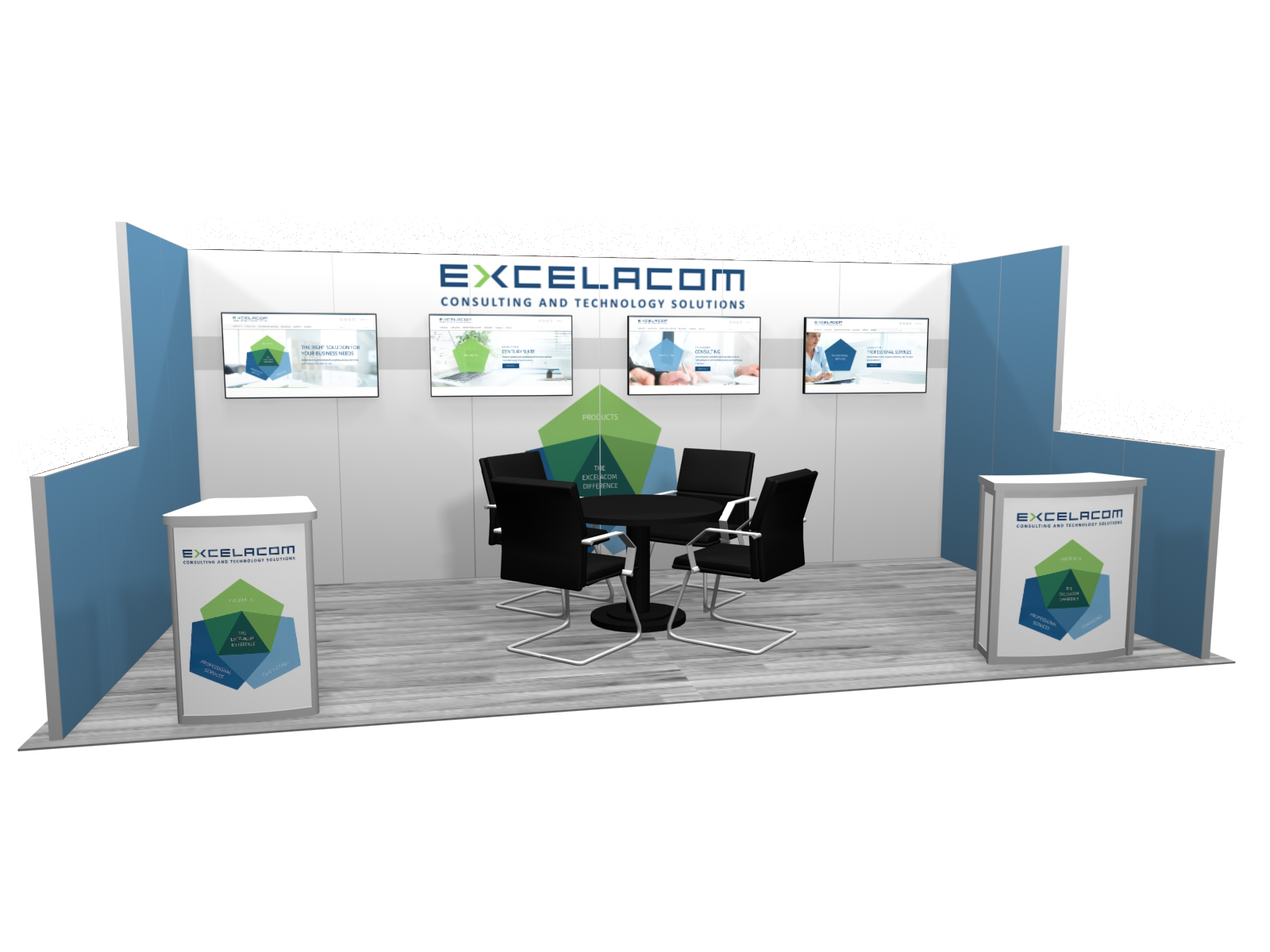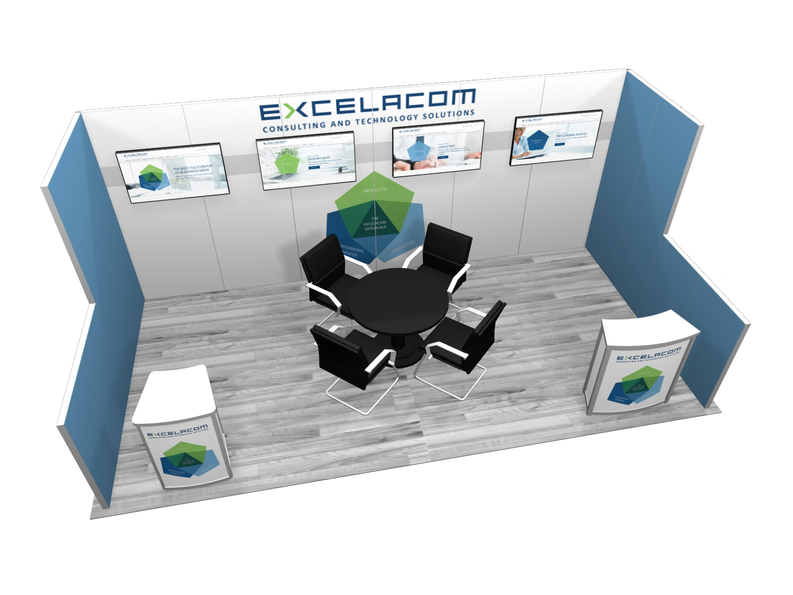 Many exhibitors blend rental components with their existing exhibit. For example, your exhibit may include the main structure, like a tower and a conference room. Renting the workstations, kiosks, or other accessories will allow you to mix and match components depending on your show requirements. In addition, it allows you to “test-drive” components to see if there’s a long-term need.