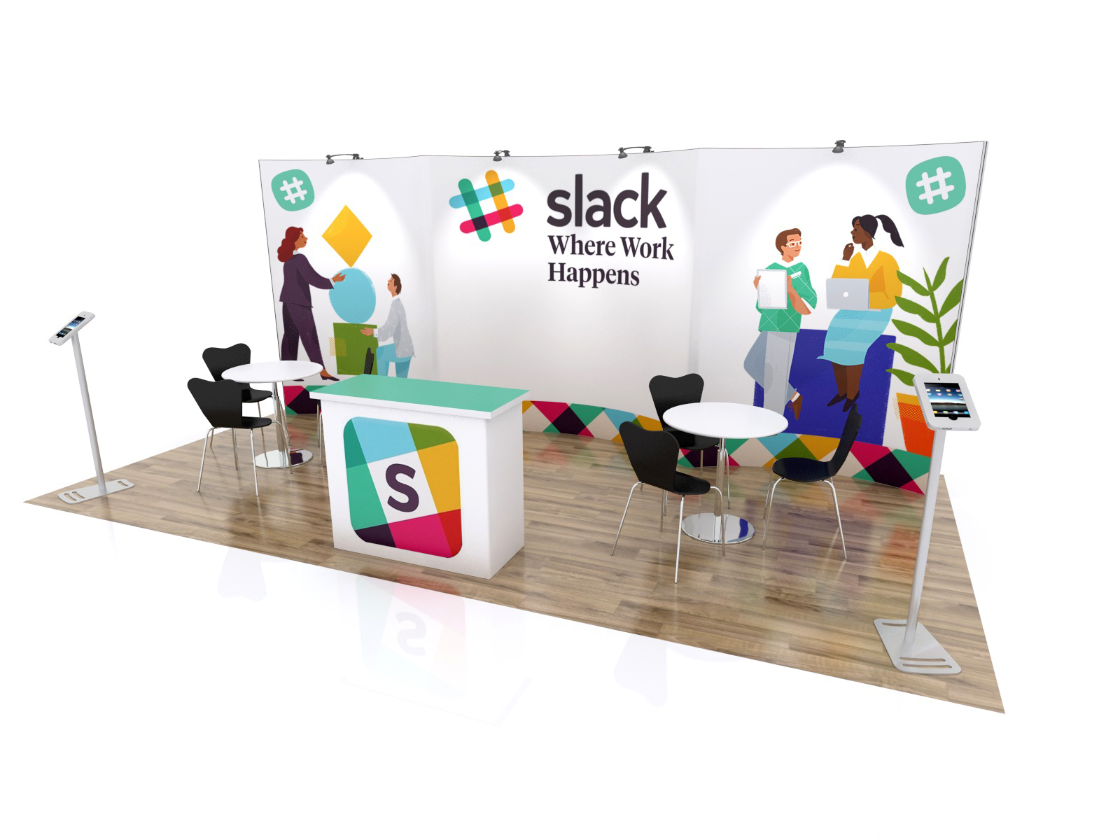 Many exhibitors blend rental components with their existing exhibit. For example, your exhibit may include the main structure, like a tower and a conference room. Renting the workstations, kiosks, or other accessories will allow you to mix and match components depending on your show requirements. In addition, it allows you to “test-drive” components to see if there’s a long-term need.