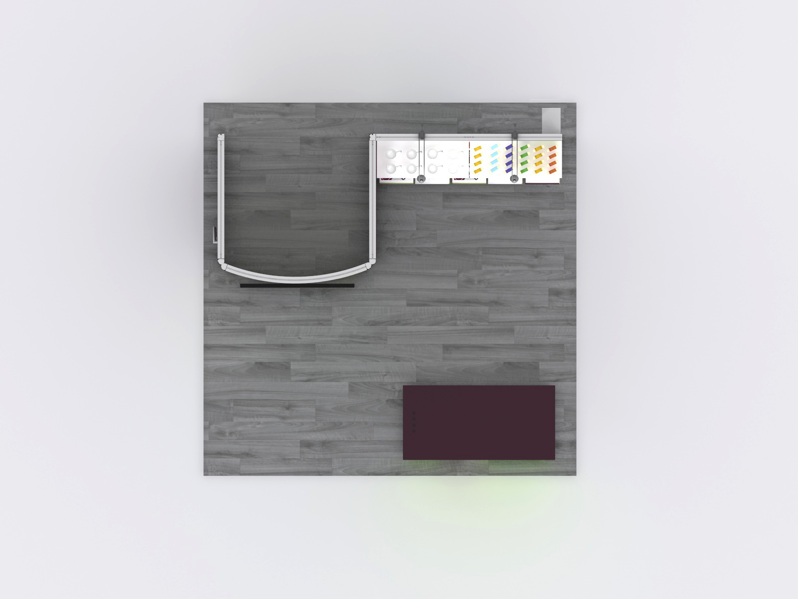 Quite often, a few custom elements added to the design can give the entire design a custom look even if it’s as simple as some colorful laminated workstations, shelves, or a reception counter. Custom laminated soffits and backlighting are also nice touches that are inexpensive and well worth the investment. As a bonus, if you re-rent the same exhibit, your second rental will most likely be less expensive, since your first rental covered the cost of those custom components.