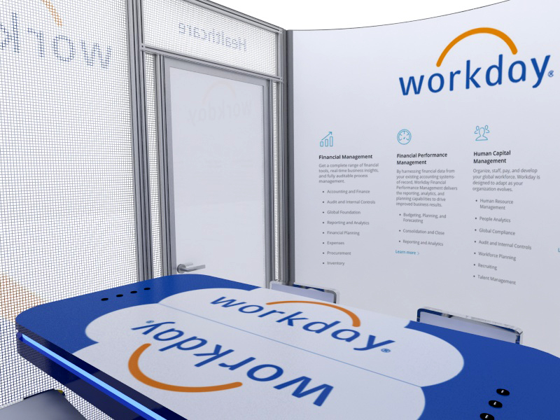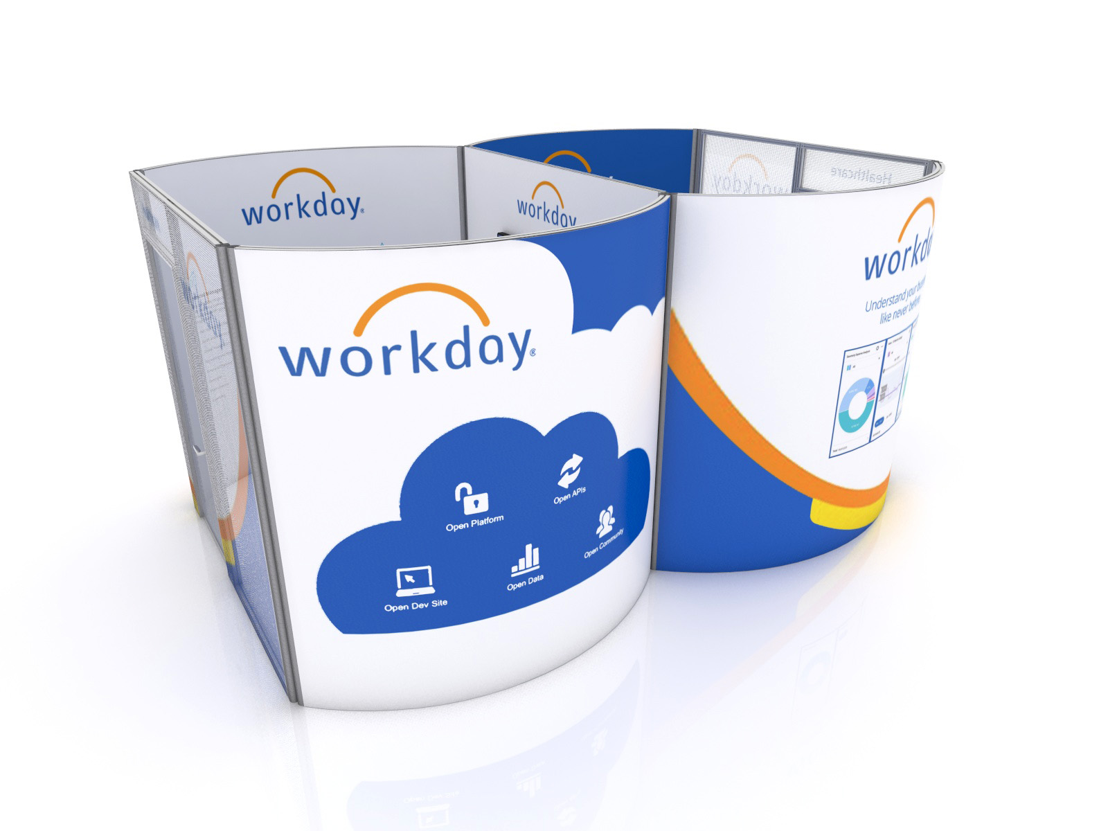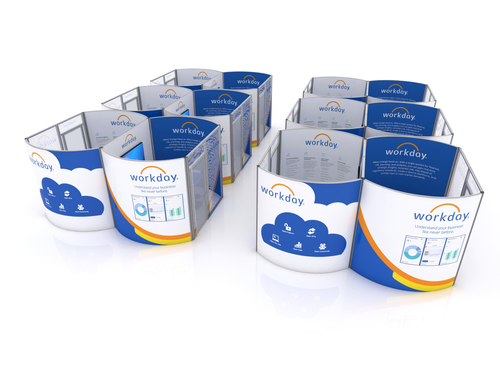 The two-sided panels are designed for either direct print graphics or SEG fabric graphics. There's internal wire management, and shelves, counters, monitor mounts, tablet kiosks, and charging stations are available for either purchase or rent. Most pod configurations pack in one or two crates, saving you on freight and drayage (material handling). And assembly takes half the time of traditional heavy meeting modules. While there are modular panel wannabes, only Gravitee combines no tools, no loose parts, and a lifetime warranty on workmanship. Rental or purchase options are available