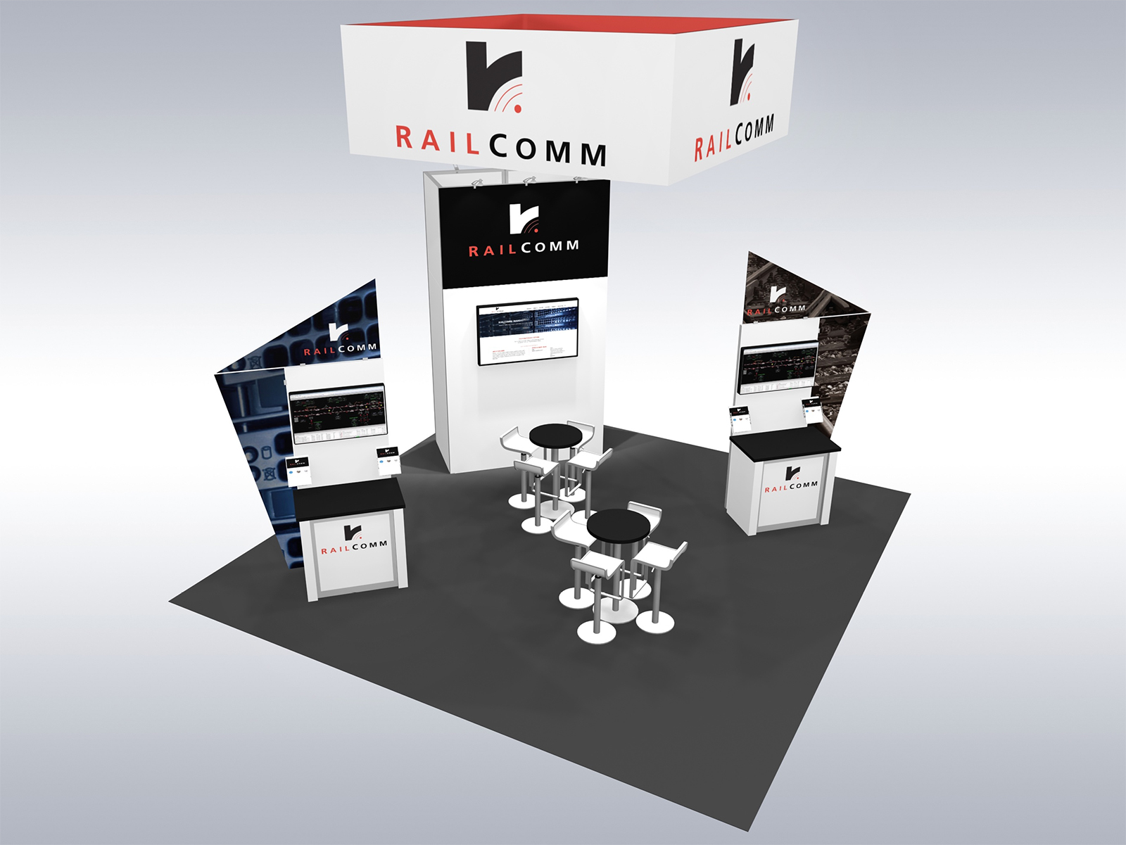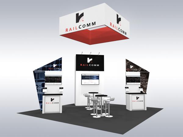 Everyone loves attention. The RE-9115 Island is designed to attract and maintain attention better than most island displays. The towering 10' x 10' x 42" Square Hanging Sign makes it hard for potential customers to miss your booth. Additionally, our 12 ft. High Gravitee Storage Tower with Locking Door provides more exposure of your brand to the people on the floor. Two attractive RE-1233 counter kiosks provide extra storage, as well as another space to meet. A large monitor mount also provides a place where you can give presentations and pitches to valued customers.