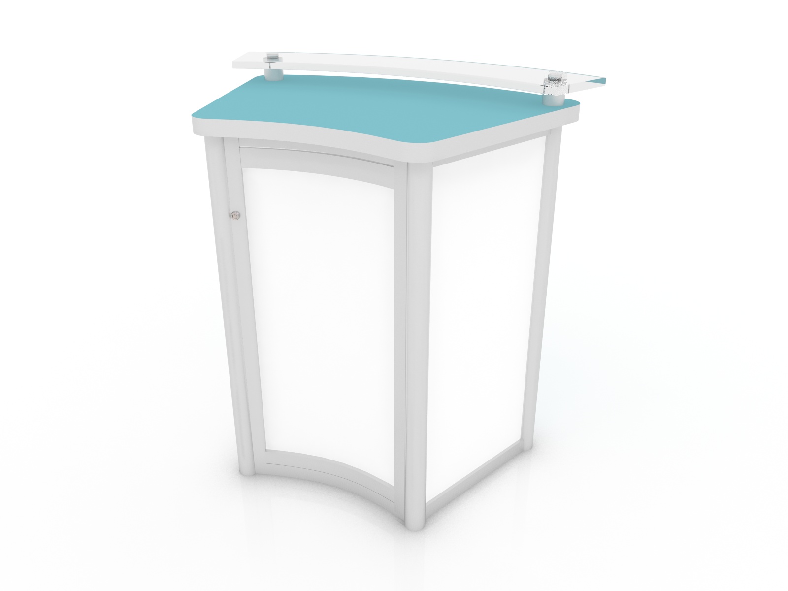 MOD-1109 Trade Show CounterThere are nearly 200 choices in the Counters and Pedestals gallery at a range of prices and features. Nearly all come with locking storage. Most counters and pedestals are modular, meaning they disassemble for shipping, but there are quite a few custom counters which ship fully assembled. Don't see exactly what you want? No problem. We specialize in designing and building counters and pedestals that meet any need.