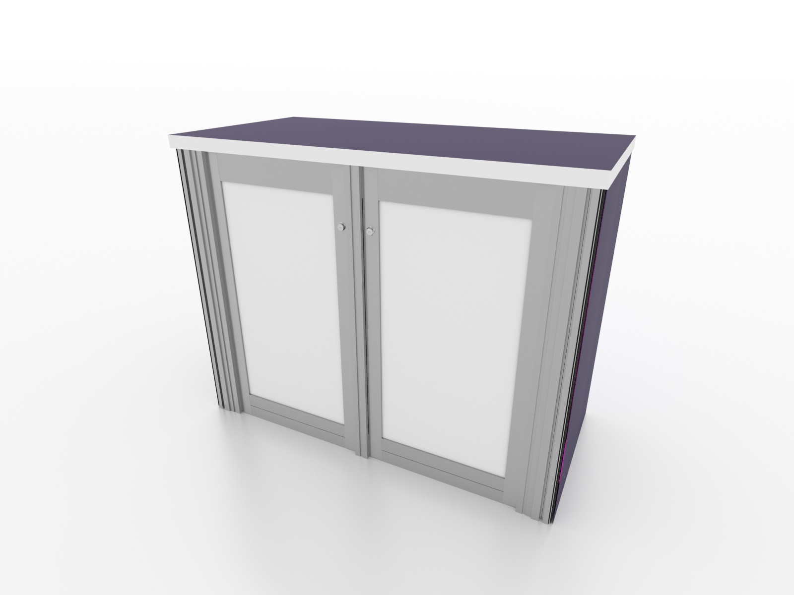 When choosing the right counter or pedestal for your display, consider how you will use it on the show floor. Do you need locking storage? Will the counter or pedestal hold a lead retrieval machine, laptop, or other electrical device? If so, you will need wire management. That may be as simple as ordering a grommet for the counter. If you are planning to use a tablet computer, consider the tablet insert option for the counter top. This option is practical, attractive, and secure for many tablets, such as an iPad.