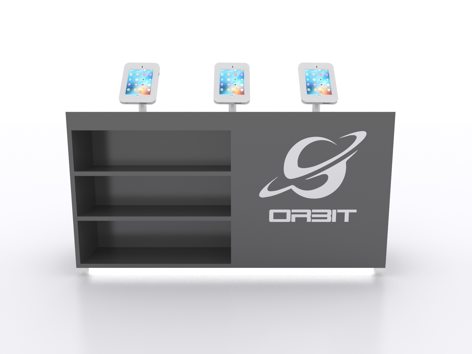 When choosing the right counter or pedestal for your display, consider how you will use it on the show floor. Do you need locking storage? Will the counter or pedestal hold a lead retrieval machine, laptop, or other electrical device? If so, you will need wire management. That may be as simple as ordering a grommet for the counter. If you are planning to use a tablet computer, consider the tablet insert option for the counter top. This option is practical, attractive, and secure for many tablets, such as an iPad.