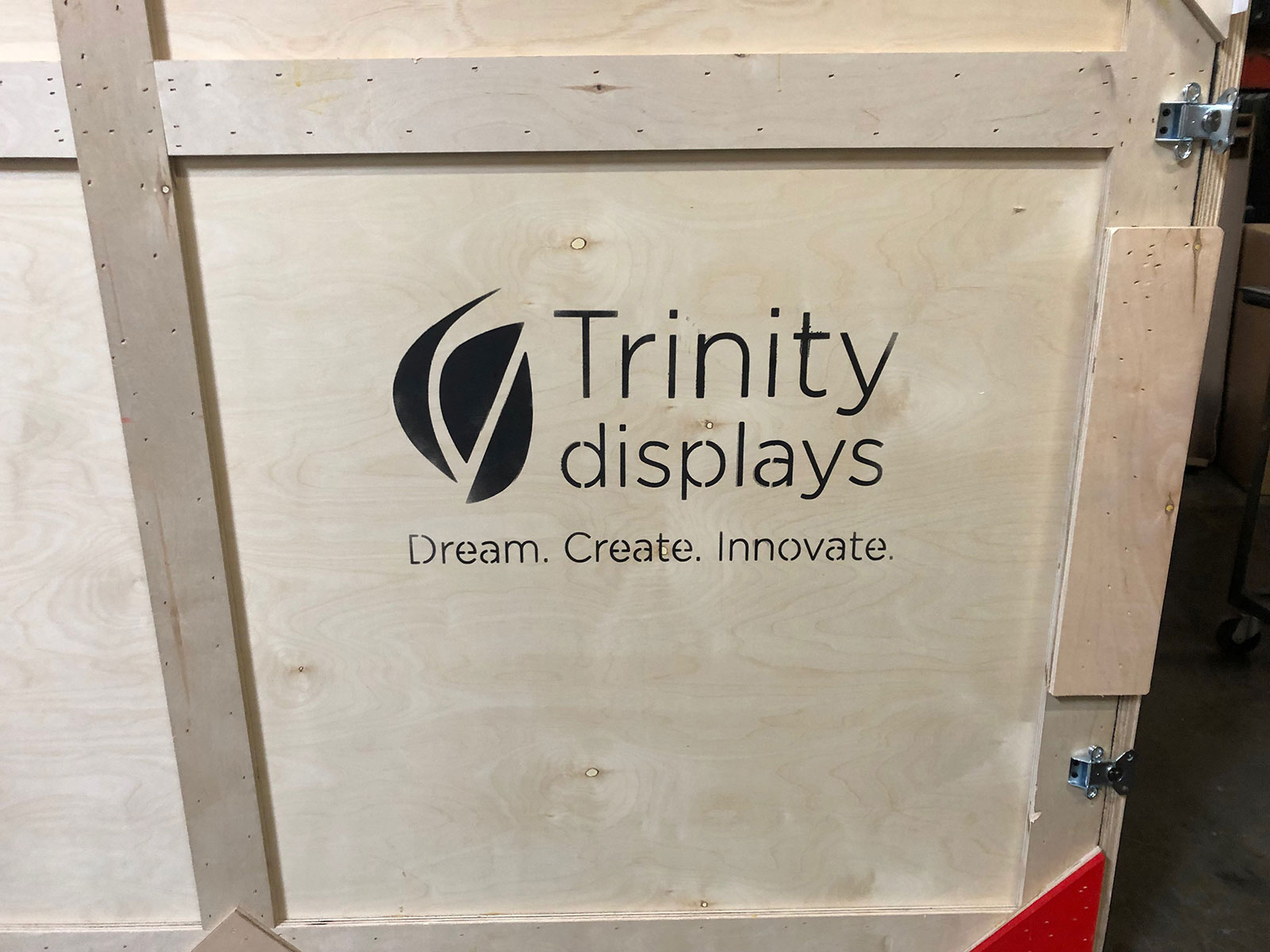 Custom Wood Crate -- Crate Branding Example #1If you’re envisioning a big wood box, you couldn’t be more wrong. Our custom wood crates are fabric lined and jigged to fit all the components of your display. The layers and components are labeled and cross-referenced to detailed set-up instructions, which included specific packing instructions. Many custom crates have hinged doors and individual compartments, depending on the specific design.