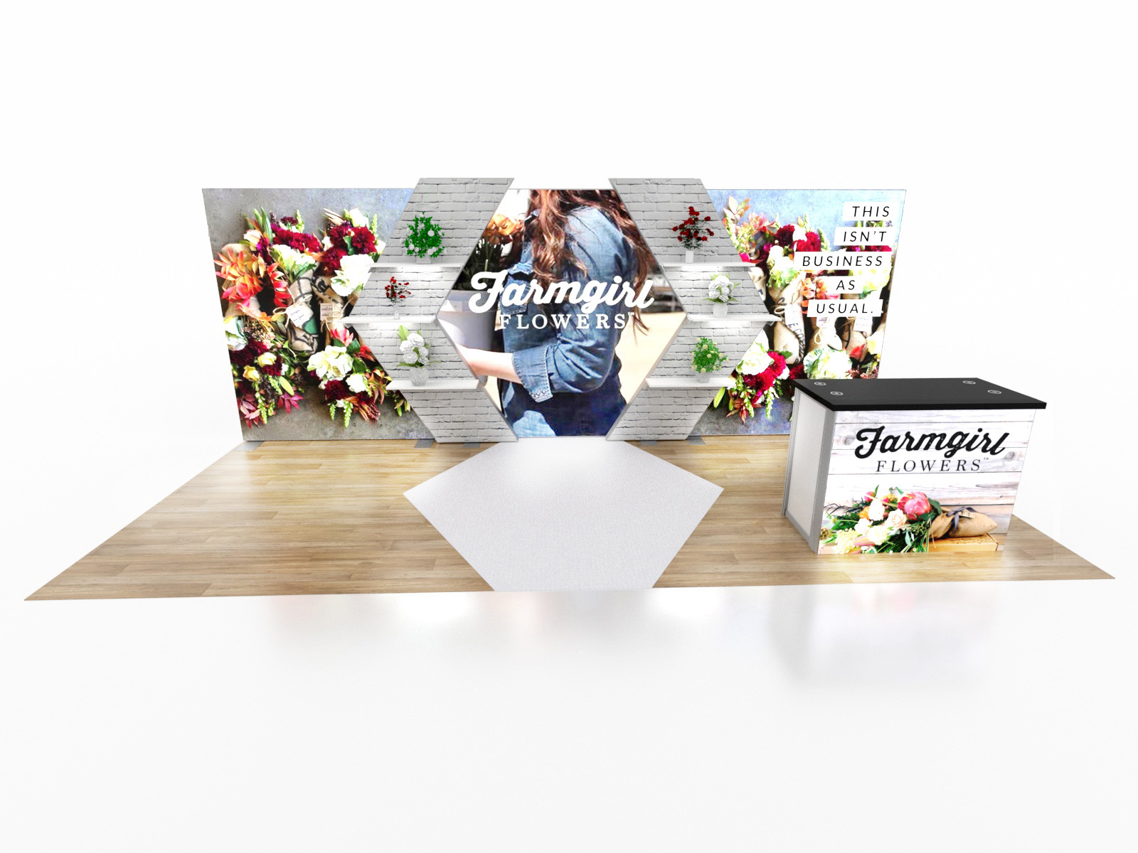 The Sunrise features lightweight aluminum extrusion and large format tension fabric graphics. Choose from 10 x 10 and 10 x 20 designs, single and double-sided graphics.