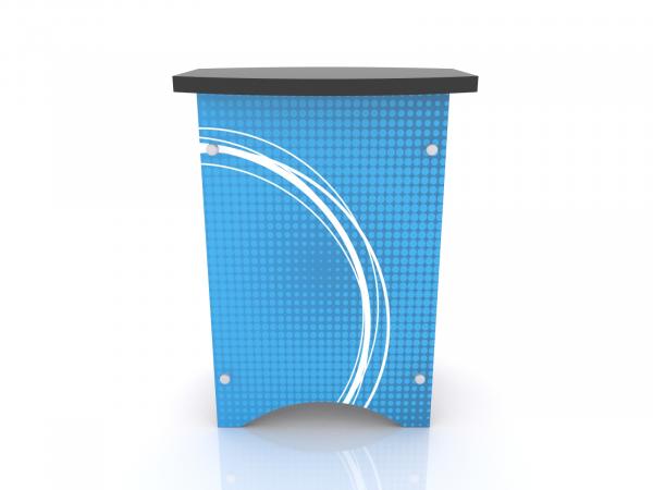 When choosing the right counter or pedestal for your display, consider how you will use it on the show floor. Do you need locking storage? Will the counter or pedestal hold a lead retrieval machine, laptop, or other electrical device? If so, you will need wire management. That may be as simple as ordering a grommet for the counter. If you are planning to use a tablet computer, consider the tablet insert option for the counter top. This option is practical, attractive, and secure for many tablets, such as an iPad.