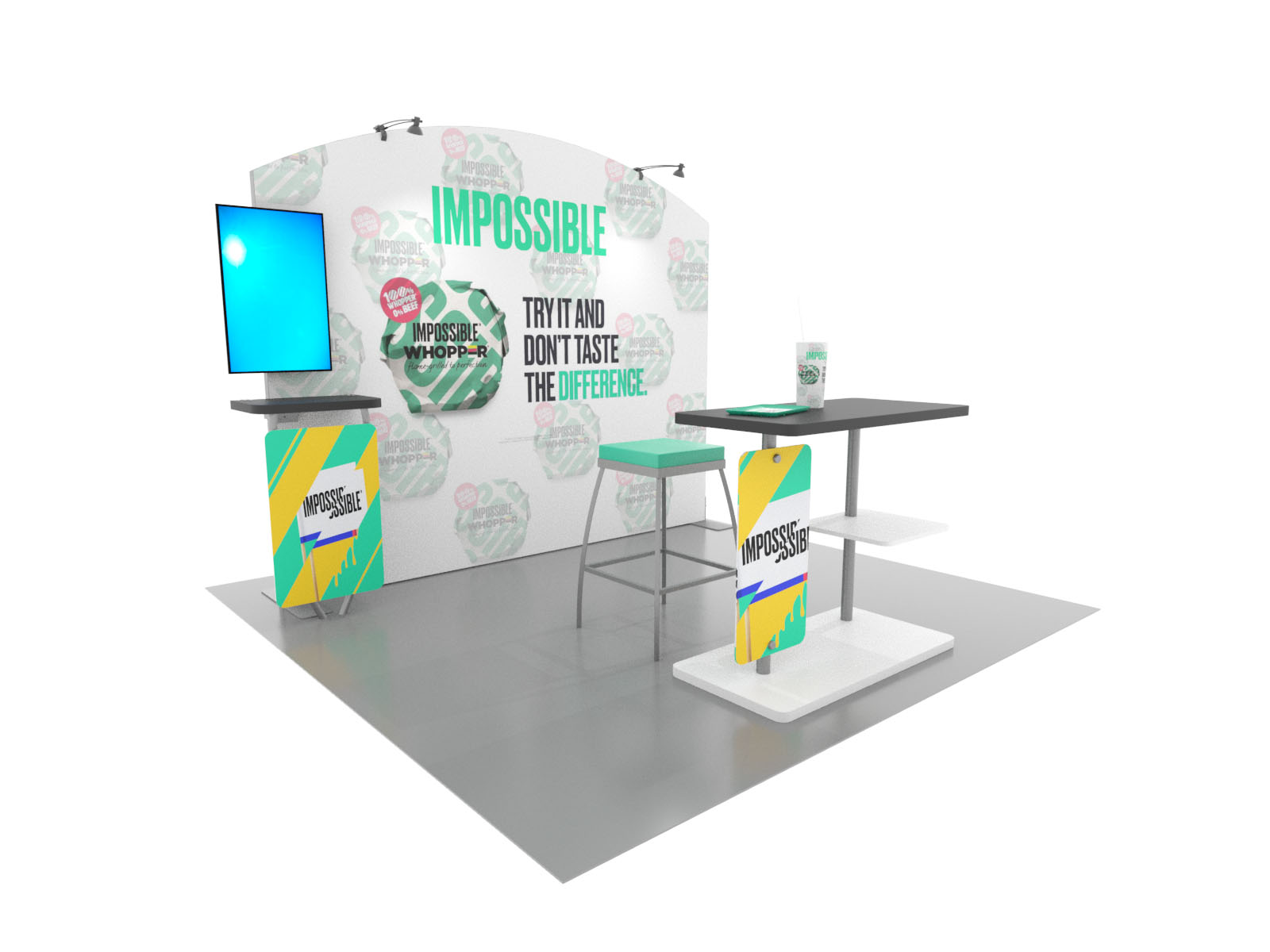 Personalize your Symphony Display with attractive counters, workstations, floating graphics, iPad clamshells, and monitor mounts. The lightweight aluminum frames are engineered for SEG dye-sublimated fabric graphics for a seamless, wrinkle-free look. Add floating graphics for additional visual layering and branding.