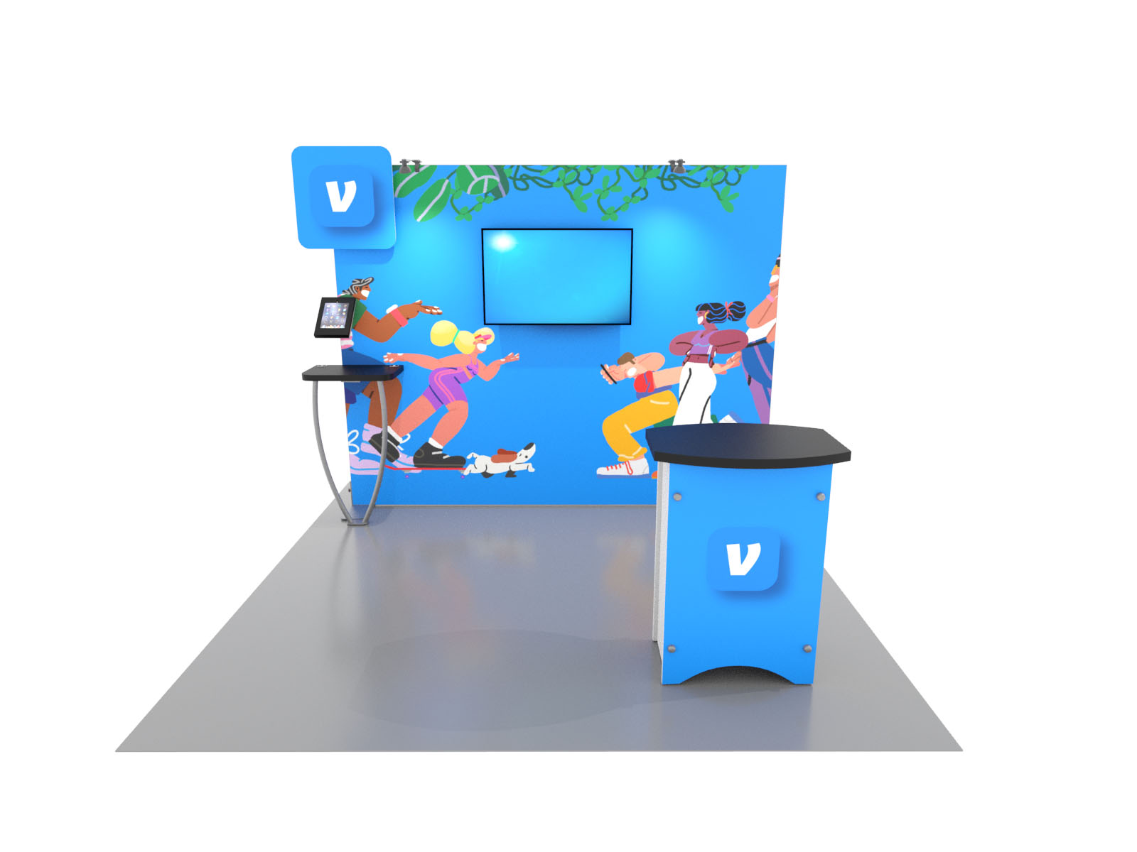 Many exhibitors blend rental components with their existing exhibit. For example, your exhibit may include the main structure, like a tower and a conference room. Renting the workstations, kiosks, or other accessories will allow you to mix and match components depending on your show requirements. In addition, it allows you to “test-drive” components to see if there’s a long-term need.