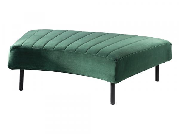 This retro-vibe, green velvet curved ottoman with a modern flair is compact, comfortable and stylish. Dims: 60.5" L x 37.5" D x 15" H