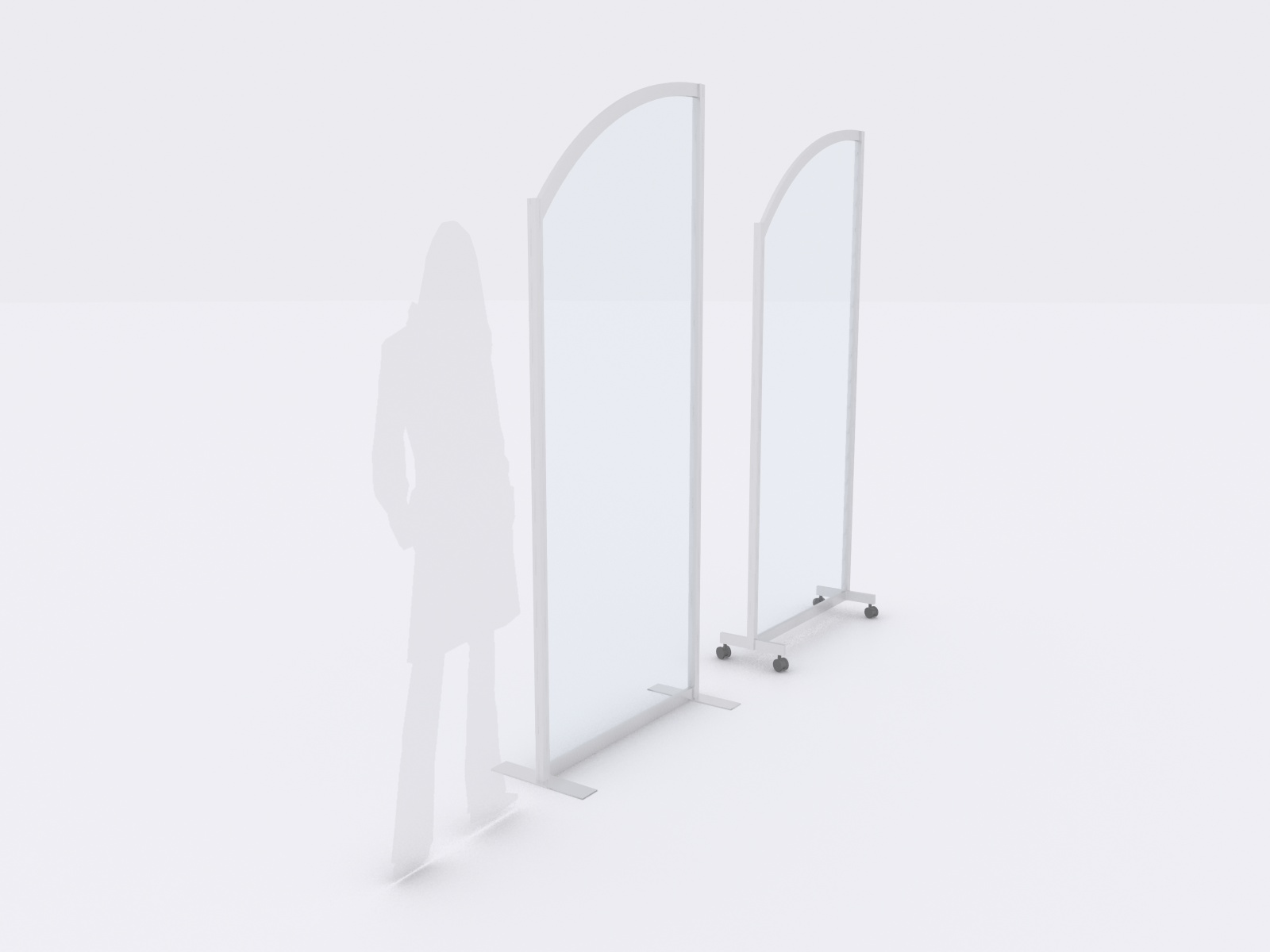 Safety Dividers are essential in retail stores, offices, churches, events, and any public gathering. They create physical distance, maintain order, and protect people anywhere groups are present. In permanent or semi-permanent situations, base plates are the logical choice. Where the dividers are meant to be temporary or quickly moved, then castors are the best option.