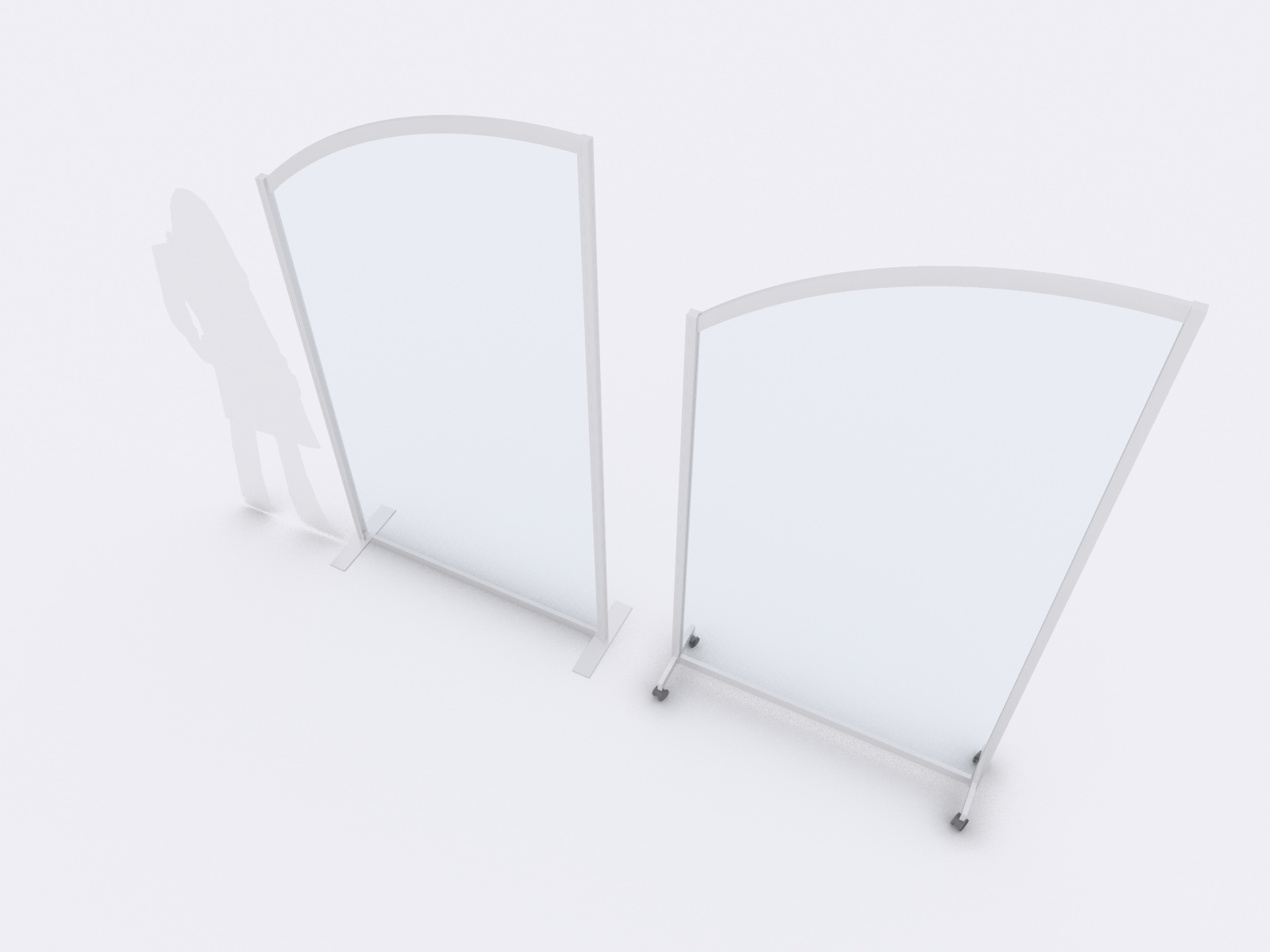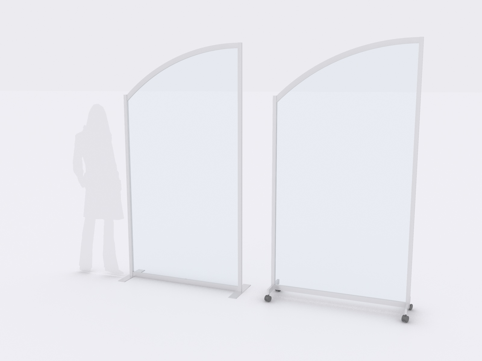 MOD-8020 and MOD-8021 Safety Dividers -- Image 1Safety Dividers are essential in retail stores, offices, churches, events, and any public gathering. They create physical distance, maintain order, and protect people anywhere groups are present. In permanent or semi-permanent situations, base plates are the logical choice. Where the dividers are meant to be temporary or quickly moved, then castors are the best option.