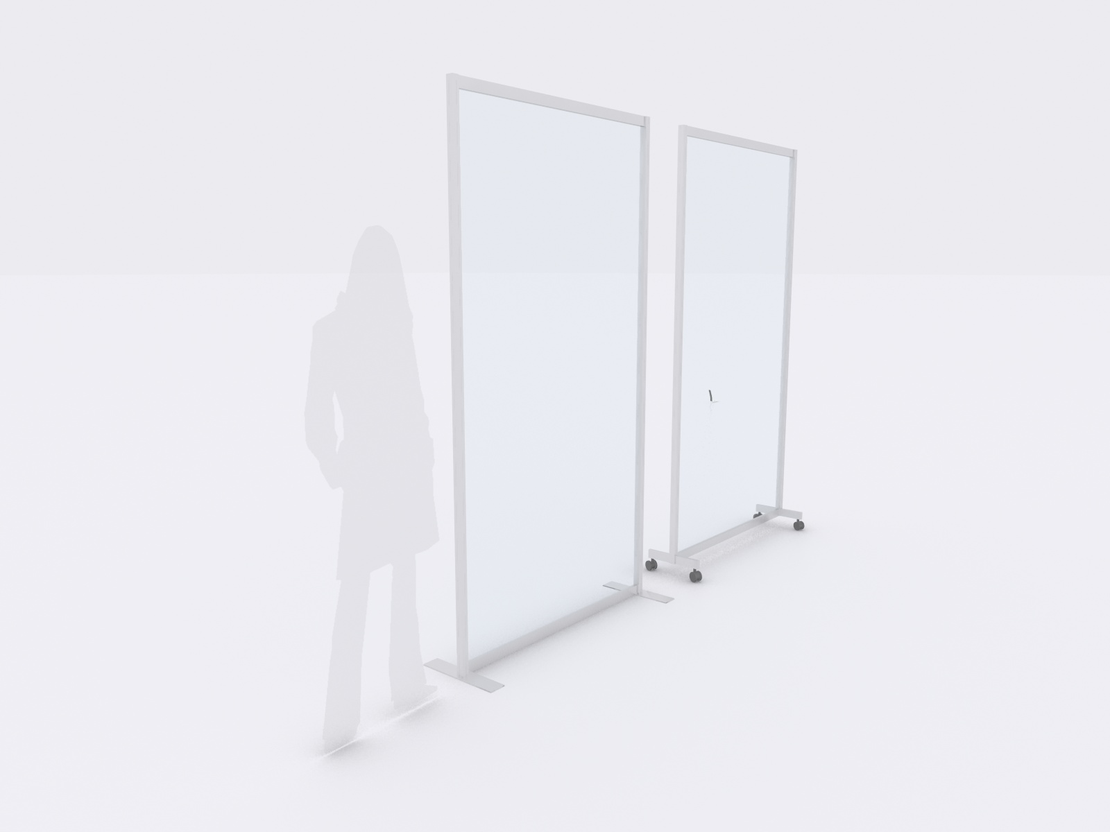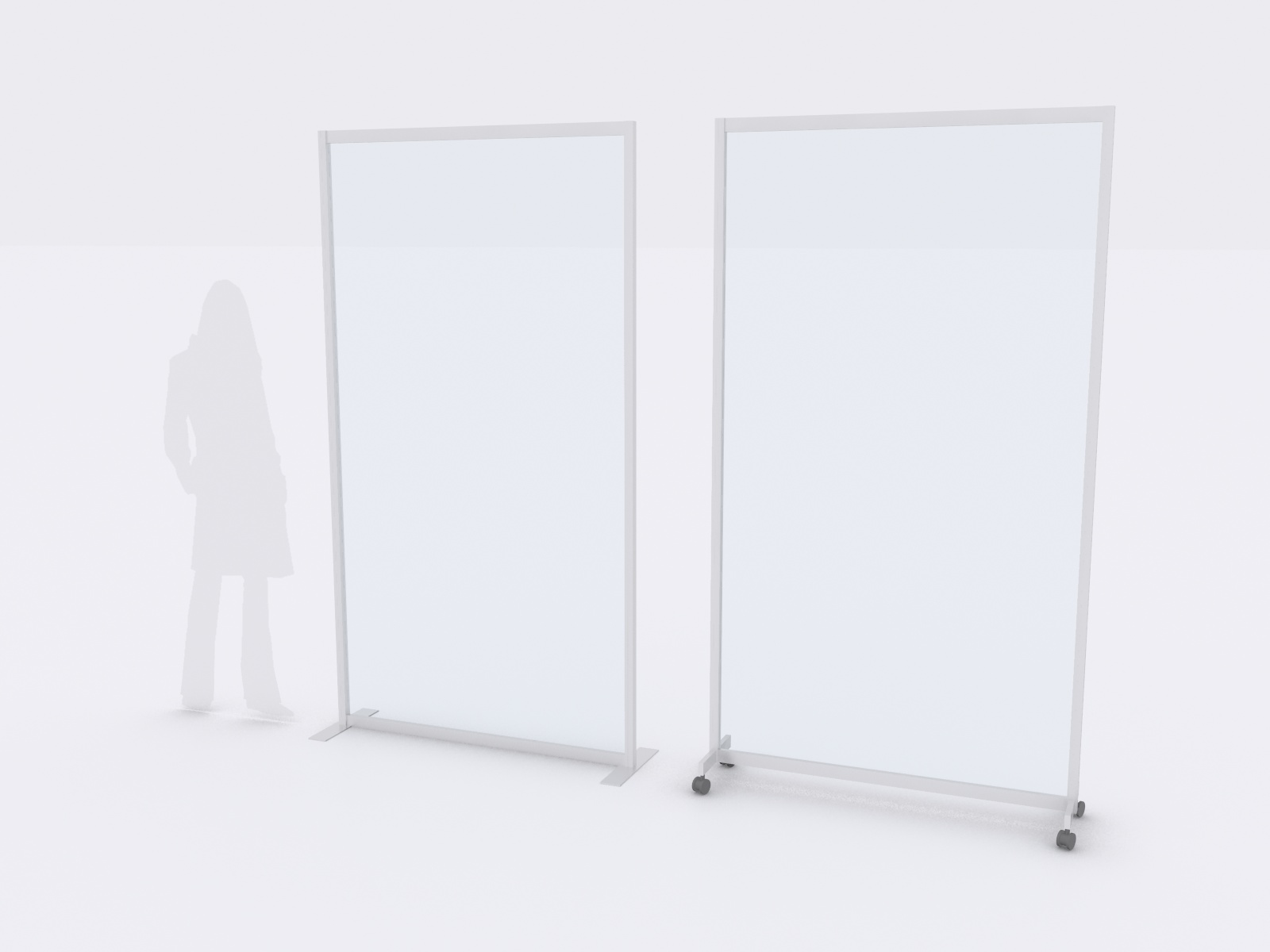 Safety Dividers are essential in retail stores, offices, churches, events, and any public gathering. They create physical distance, maintain order, and protect people anywhere groups are present. In permanent or semi-permanent situations, base plates are the logical choice. Where the dividers are meant to be temporary or quickly moved, then castors are the best option.
