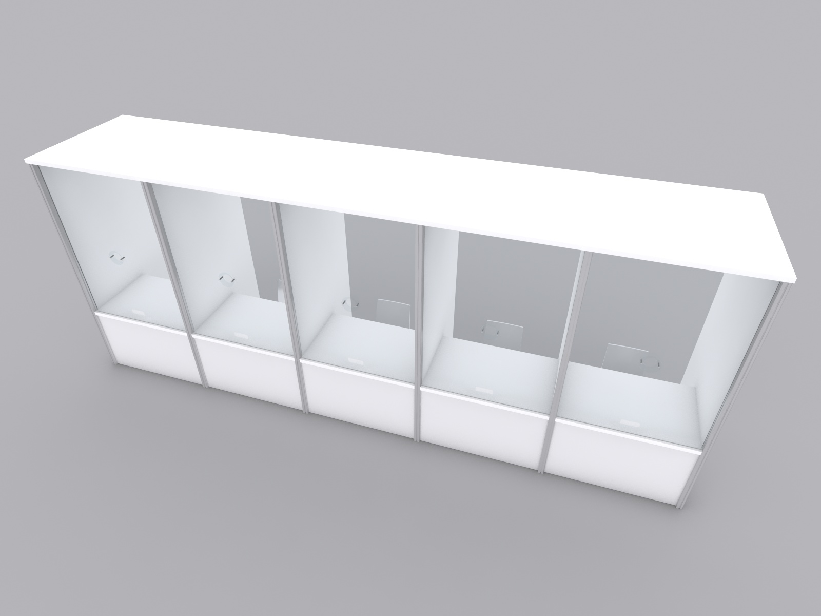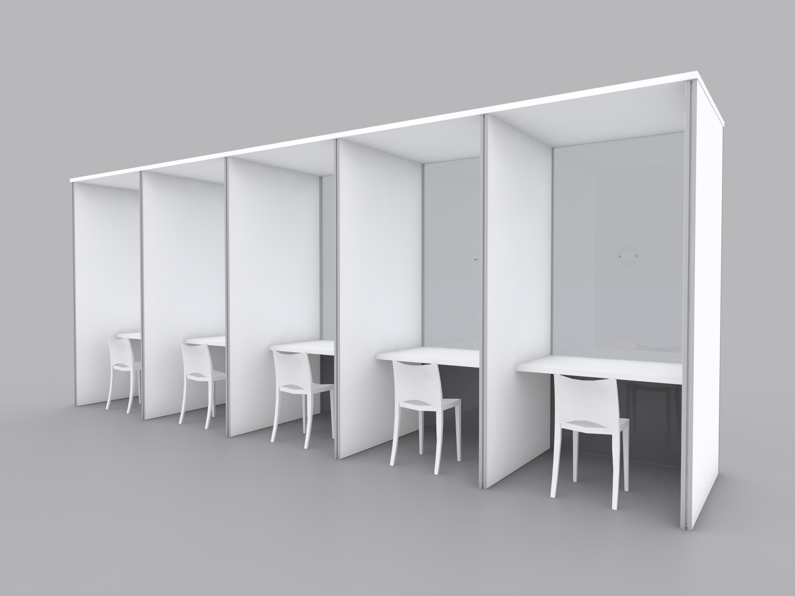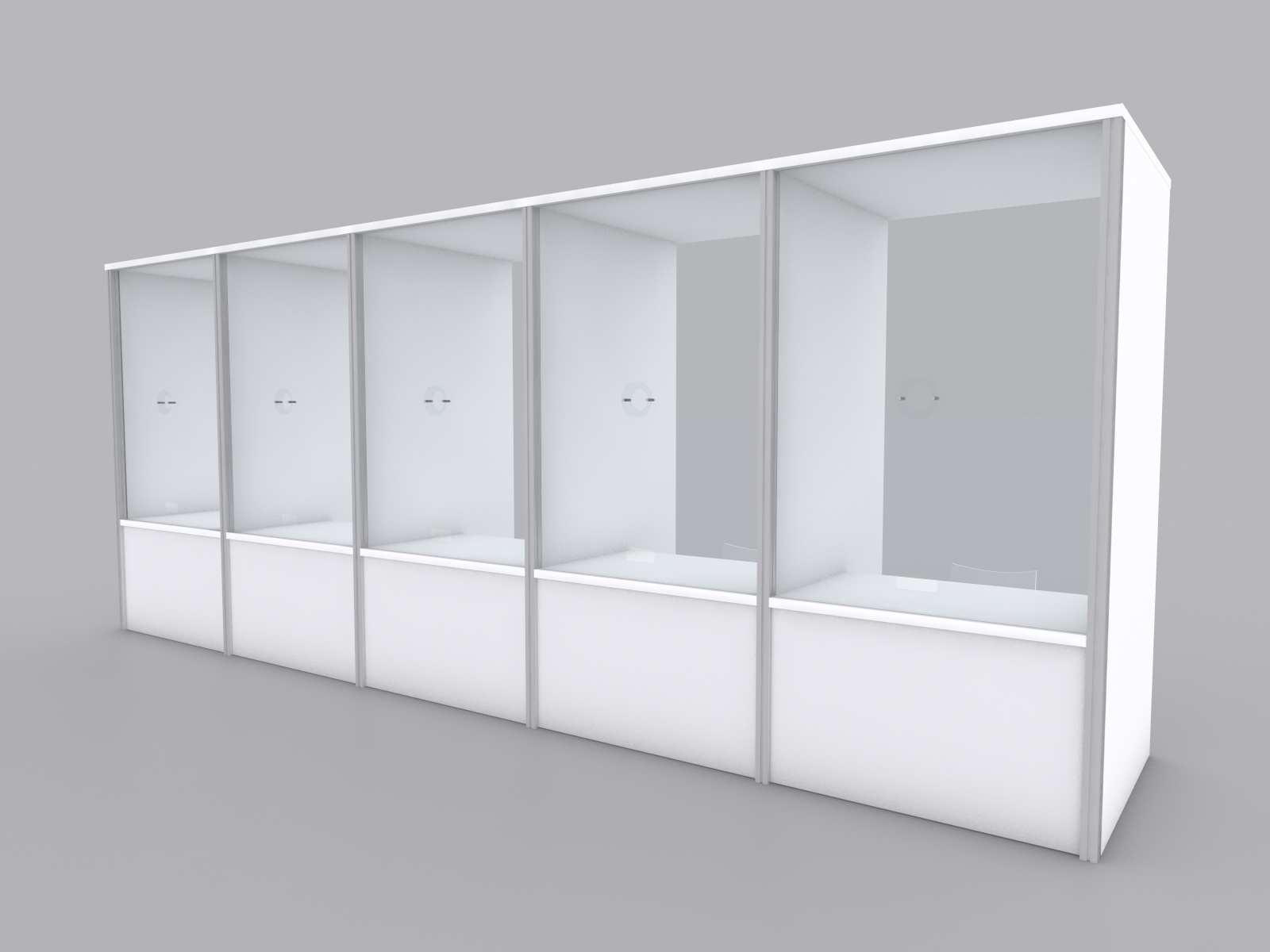 Modular Examination Rooms and Registration Stations are ideal as temporary structures, such as offsite facilities, overflow demands, or whenever construction requires short-term offices. The engineered aluminum frames are lightweight and satin anodized, making them incredibly durable and easy to clean. The frames assembly quickly, either with attached clips (Gravitee frames) or with a simple hex key (MODUL structures). The modular design allows them to expand or reconfigure, typically without disassembly of the existing structures.