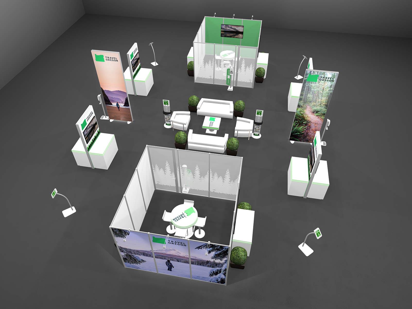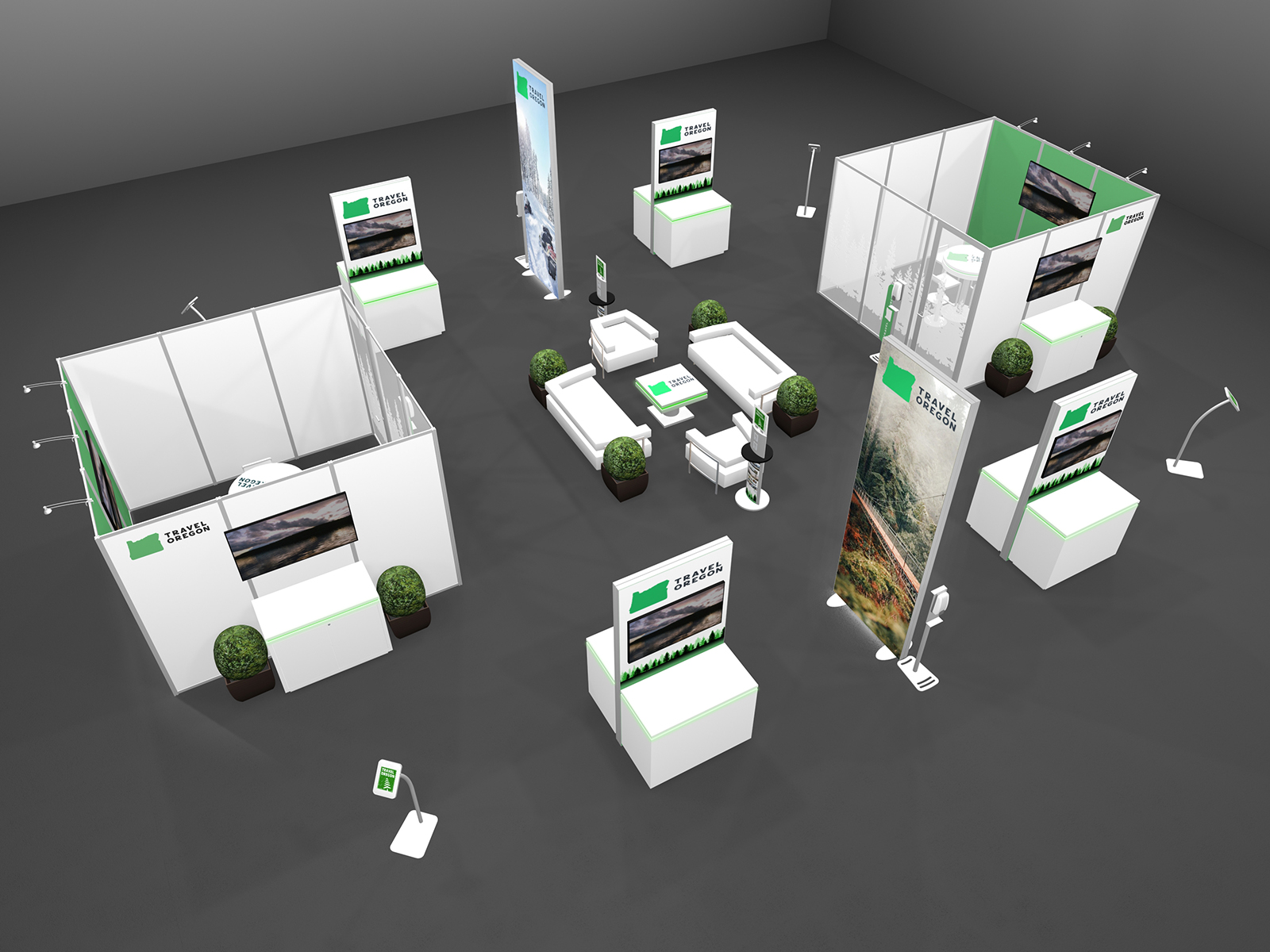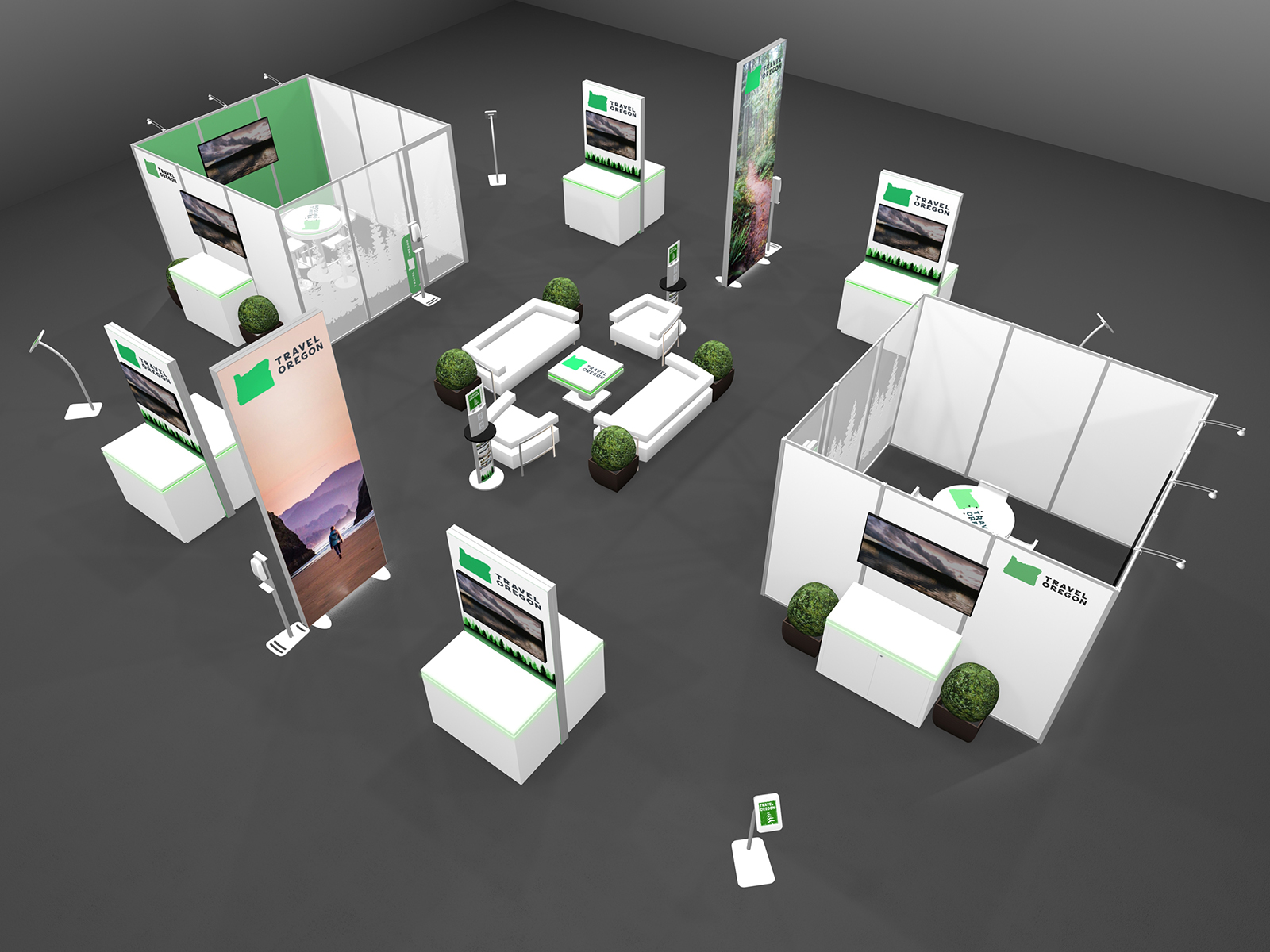 Many exhibitors blend rental components with their existing exhibit. For example, your exhibit may include the main structure, like a tower and a conference room. Renting the workstations, kiosks, or other accessories will allow you to mix and match components depending on your show requirements. In addition, it allows you to “test-drive” components to see if there’s a long-term need.