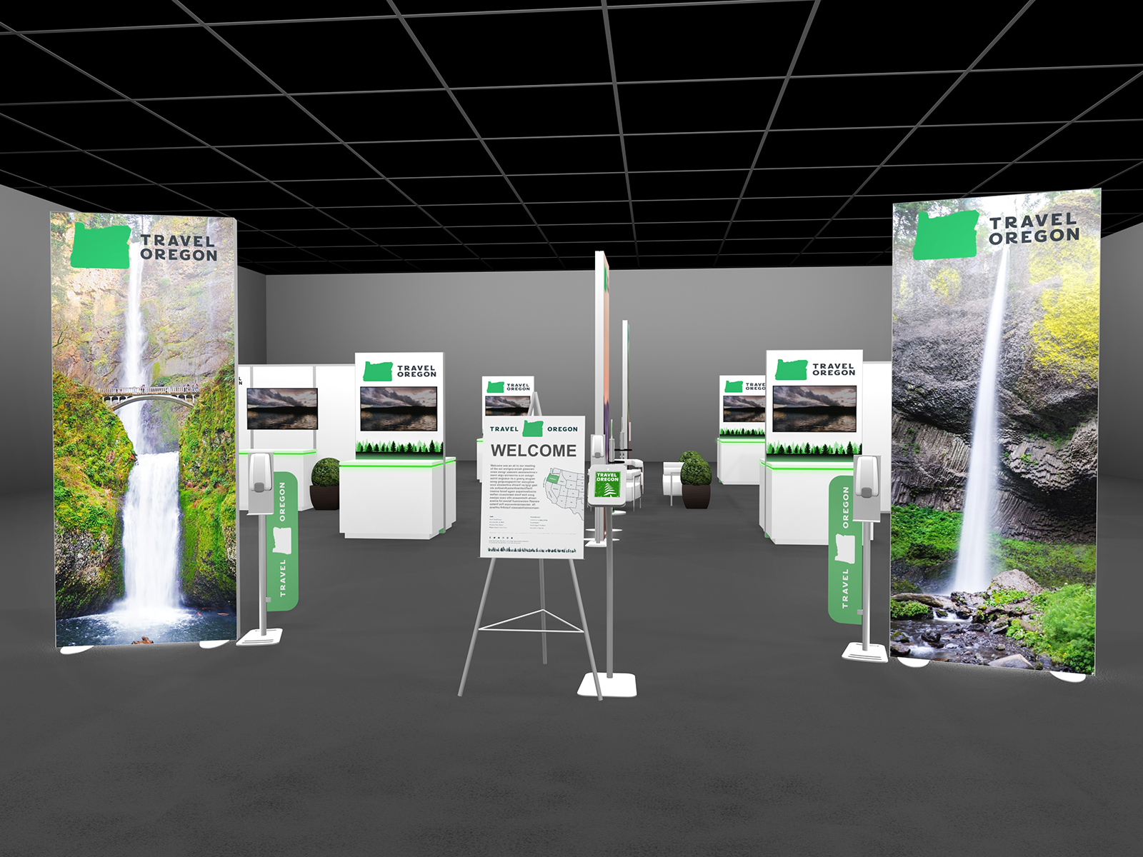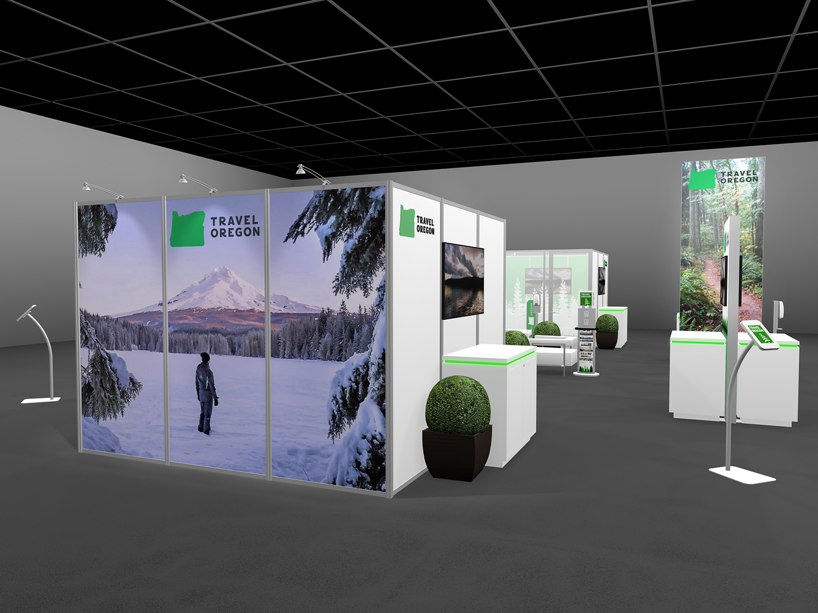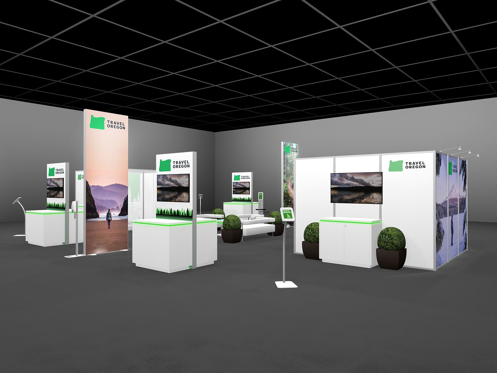 Many exhibitors blend rental components with their existing exhibit. For example, your exhibit may include the main structure, like a tower and a conference room. Renting the workstations, kiosks, or other accessories will allow you to mix and match components depending on your show requirements. In addition, it allows you to “test-drive” components to see if there’s a long-term need.