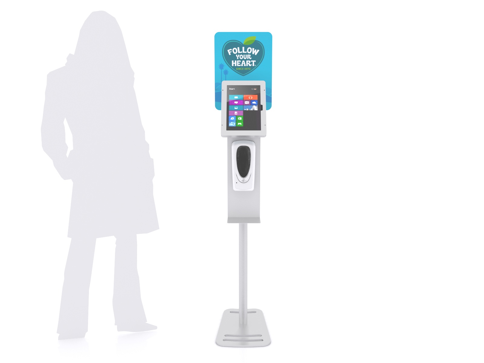 Most hand sanitizer stands are flimsy and disposable. Built for short-term use and then replaced. The Stand Tough Sanitizer Stands are designed for years of active use using engineered aluminum extrusion and solid steel base plates. The powder-coated finish and stainless steel mounting plate makes them easy to clean and resistant to scratches and chips. Assembly couldn't be easier, taking just minutes using a hex key tool (included). The 1377, 1378, and 1379 versions include a secure tablet enclosure and optional graphics and literature holders