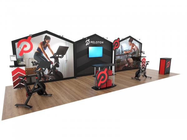 Graphics: Primarily one large tension fabric graphic @ 7.5 ft x 6.75 ft with a smaller tension fabric graphic and/or direct print graphics. Velcro tension fabric connections.