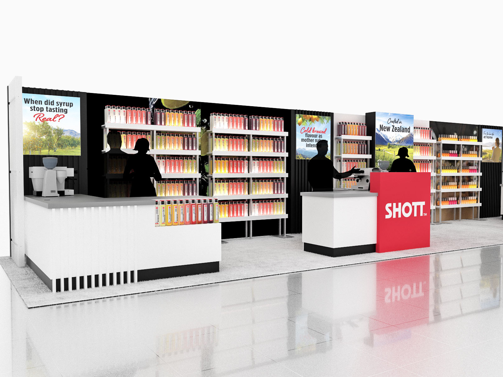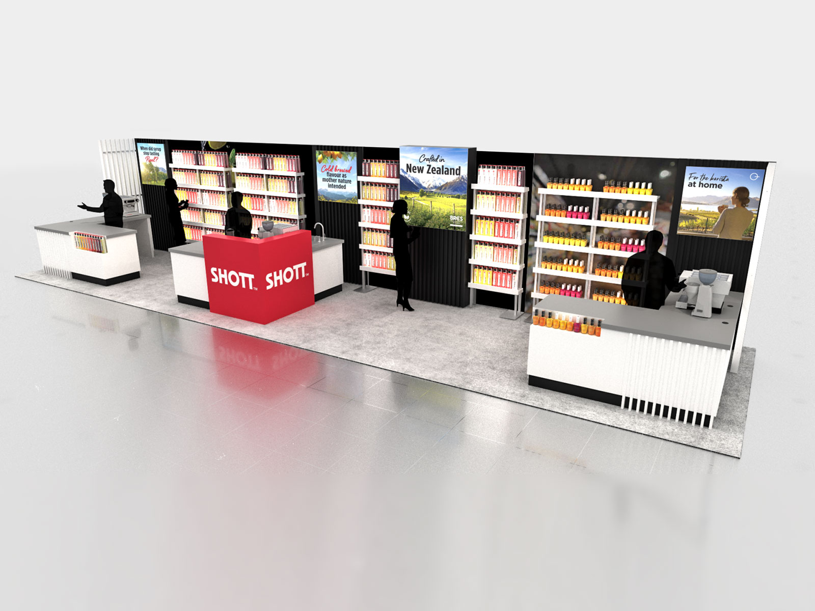 In European shows, the display may extend 8 ft. to the aisle, which is uncommon in North American shows.