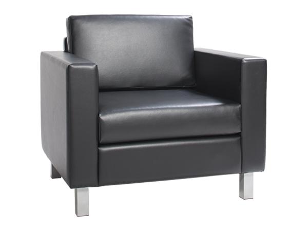 Key Largo Chair -- Trade Show Furniture RentalSleek black vinyl Naples soft seating adds a stark and versatile look, fit for any environment. Dimensions: 36"L 30"D 33.25"H