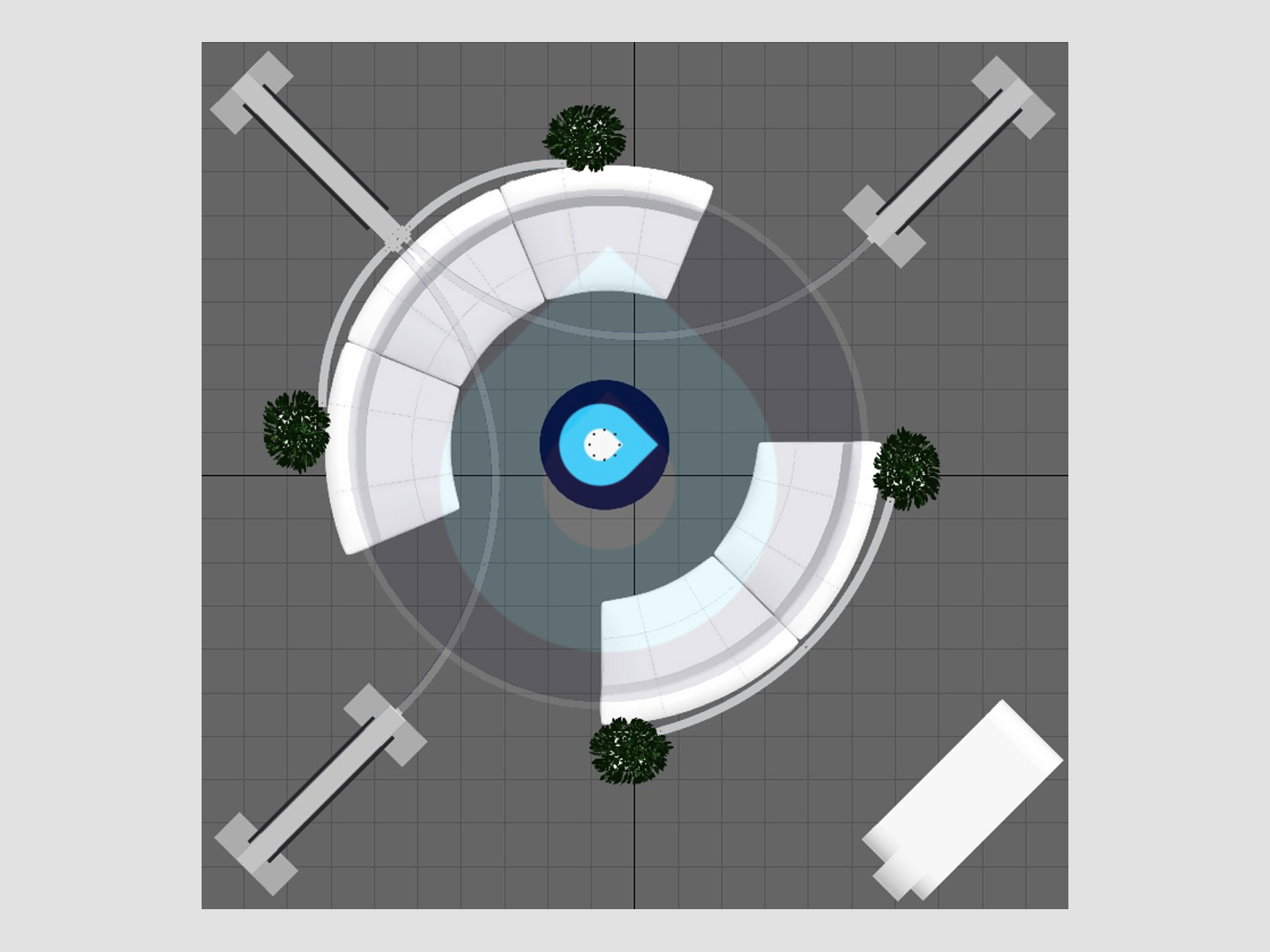 • (1) Front Curved Gravitee Half-Wall Divider @ 96" Wide x 47.5" High