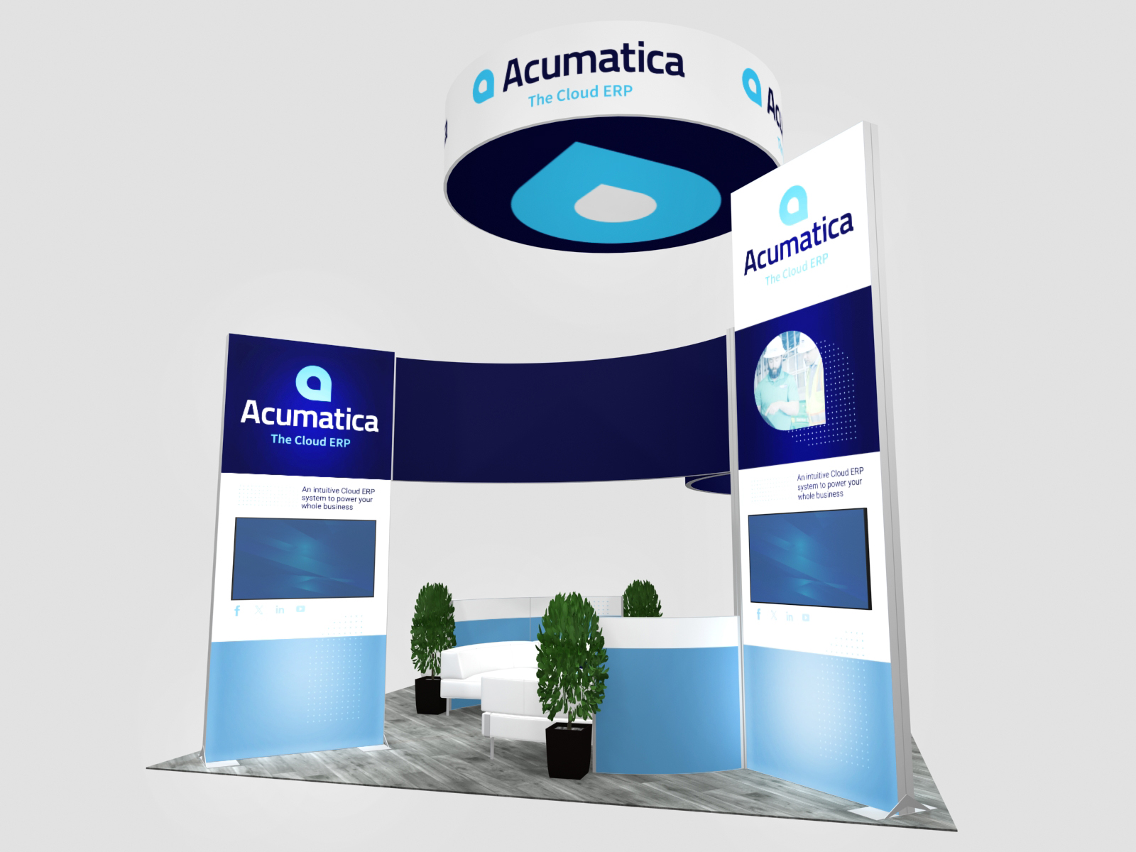 Island exhibits are displays bordering 3-4 aisles, with the smallest starting at 20’ x 20’. Inline exhibits, by contrast, typically border 1 or 2 aisles and are usually 10’ x 10’ or 10’ x 20’.
