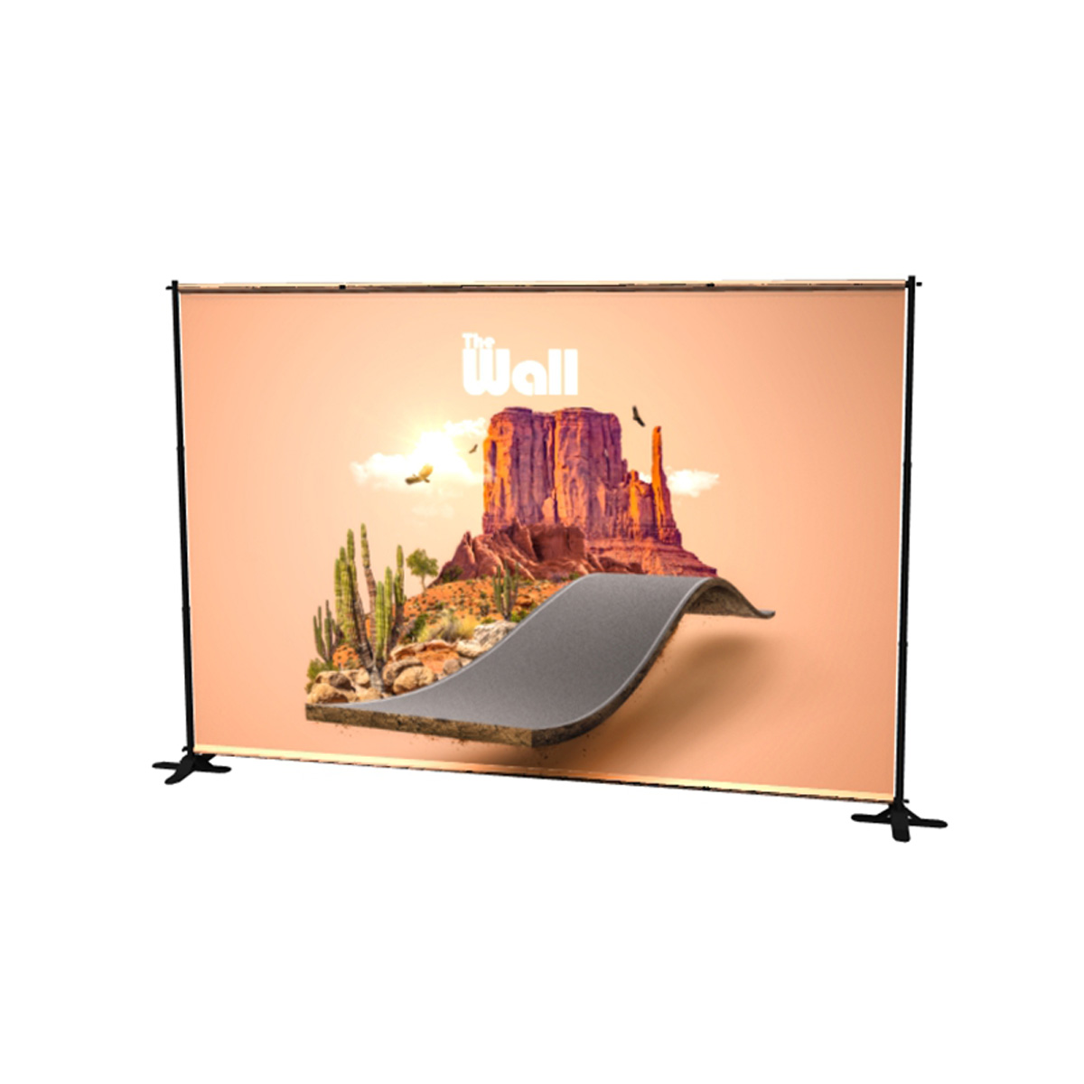 The Wall Adjustable Backwall System is both beautiful and convenient. With one collapsible frame, you can create many different-sized displays — over and over again. The Wall’s frame is constructed to adjust from 48" to 144" wide and 36" to 144" high. It also has pole pockets on the top and the bottom create a smooth, continuous image. Printed with 4K Print Technology on rKNIT™, the best dye-sub process on the market, you get color beyond compare