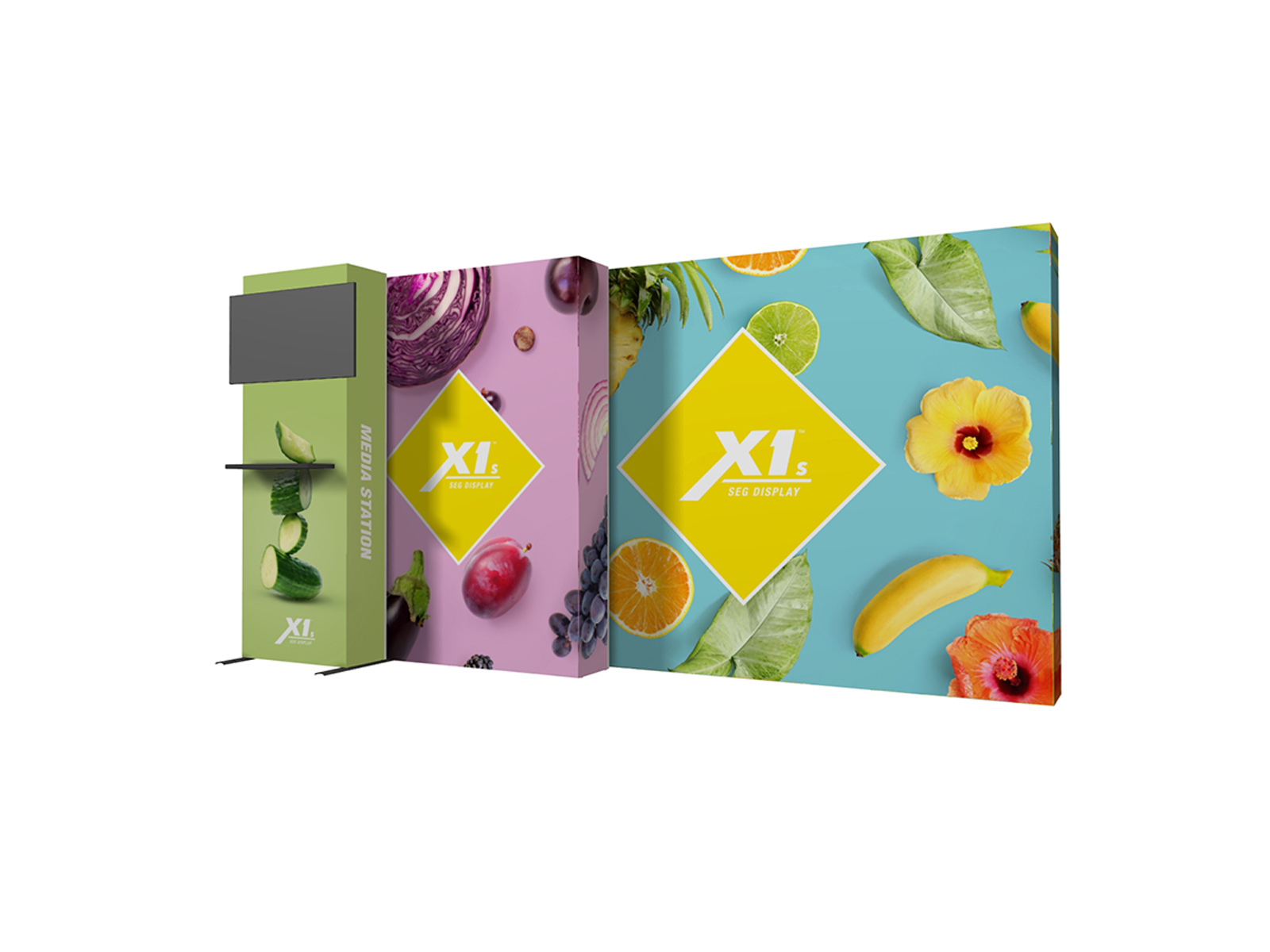 The X1s™ SEG (Silicone Edge Graphics) Modular System Uses the X1™ Versatile Frame System with SEG Channel Bars to Give You a Seamless Fabric Display. Expand Both Vertically and Horizontally, Supports Single- or Double-sided Displays. Add Backlighting, Monitors, Shelving, a Locking Closet and More. Finally, a Single Framing System That Can Do It All.