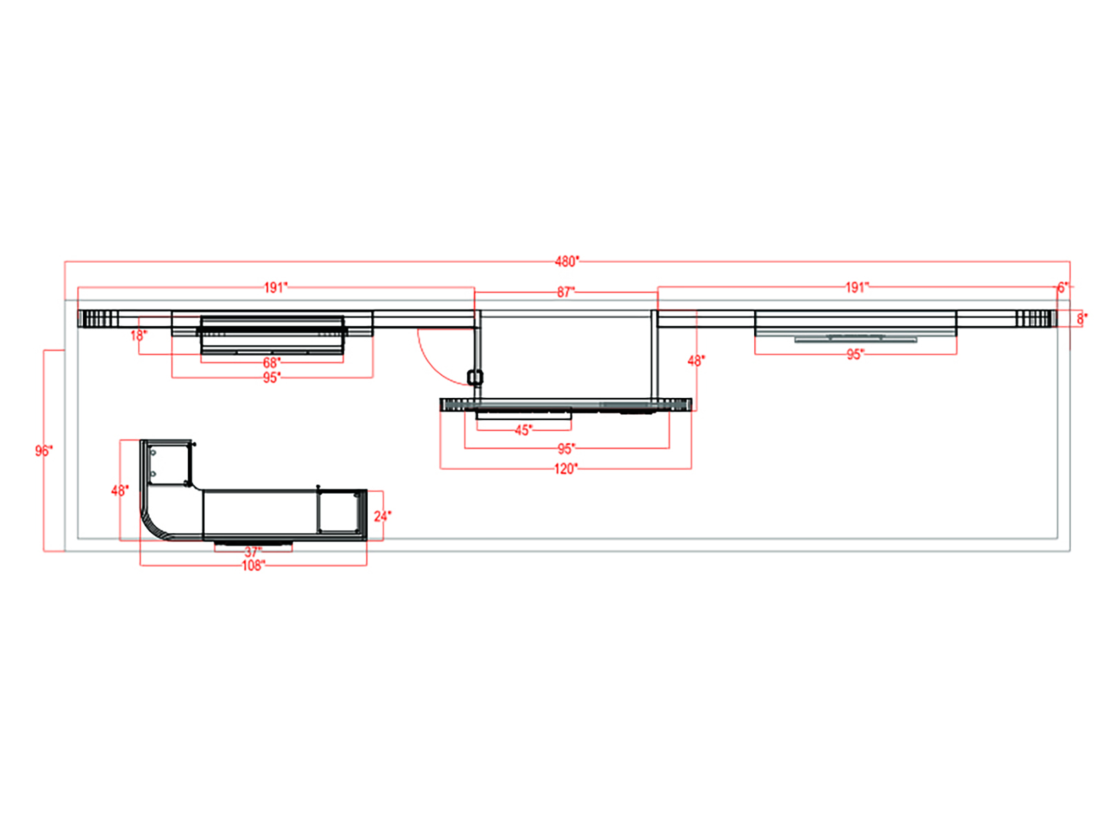 • (1) Custom Bar with Locking Cabinet Doors and Interior Shelves (108" W x 48" D x 39" H)