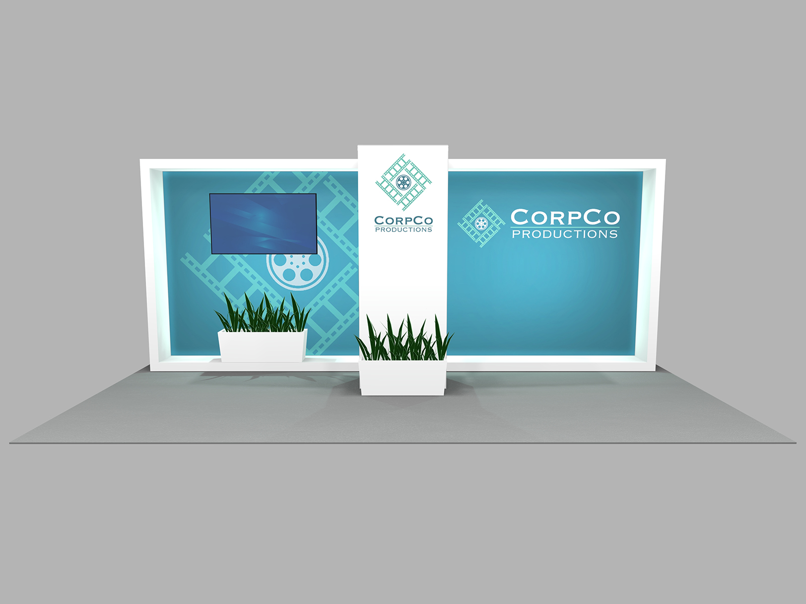 Quite often, a few custom elements added to the design can give the entire design a custom look even if it’s as simple as some colorful laminated workstations, shelves, or a reception counter. Custom laminated soffits and backlighting are also nice touches that are inexpensive and well worth the investment. As a bonus, if you re-rent the same exhibit, your second rental will most likely be less expensive, since your first rental covered the cost of those custom components.