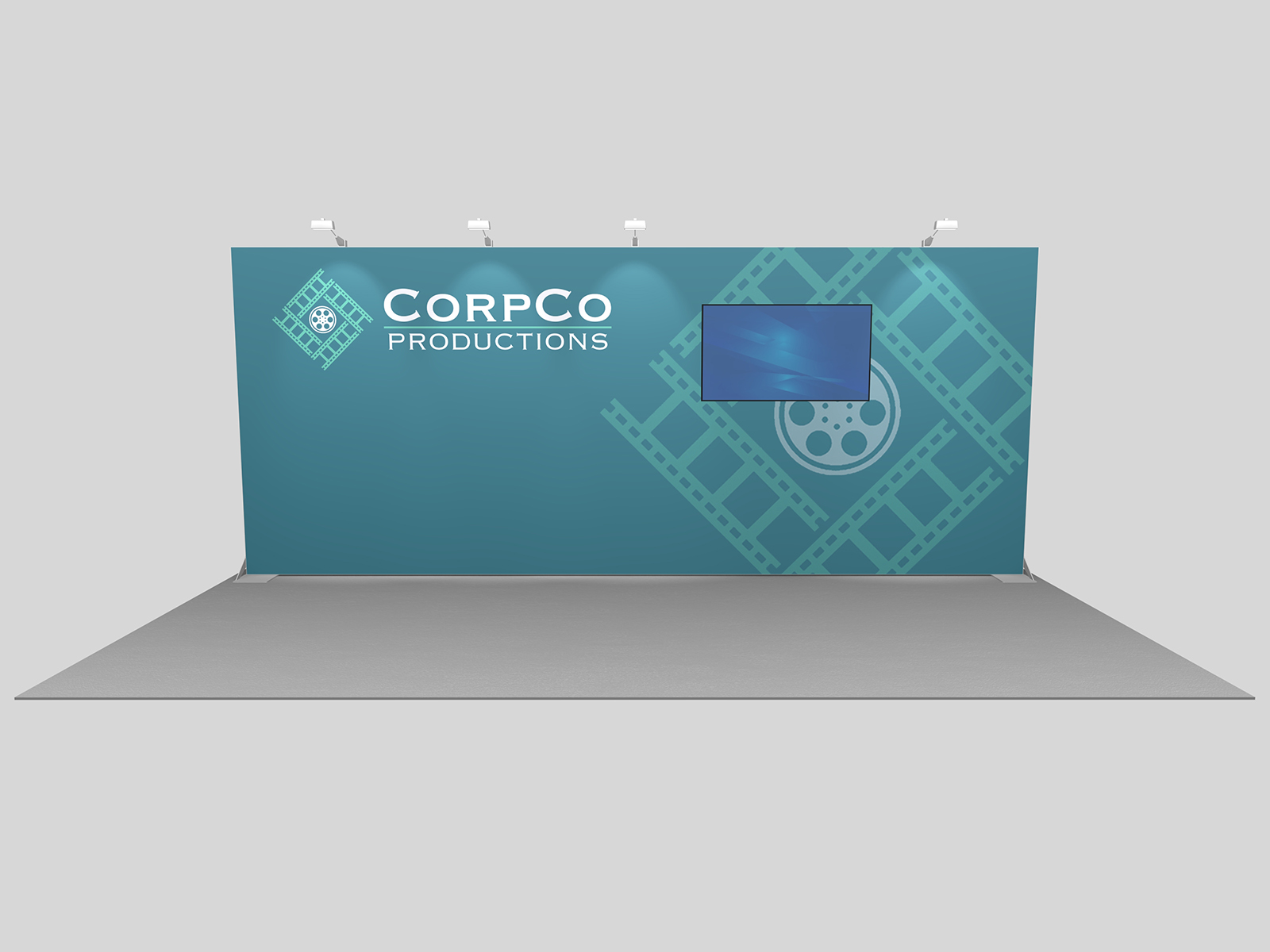 Quite often, a few custom elements added to the design can give the entire design a custom look even if it’s as simple as some colorful laminated workstations, shelves, or a reception counter. Custom laminated soffits and backlighting are also nice touches that are inexpensive and well worth the investment. As a bonus, if you re-rent the same exhibit, your second rental will most likely be less expensive, since your first rental covered the cost of those custom components.