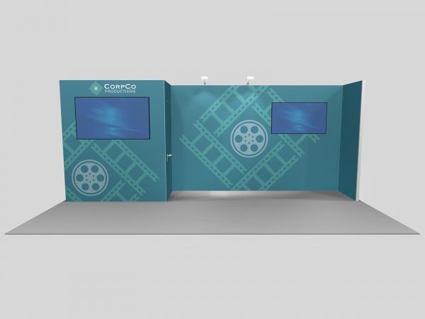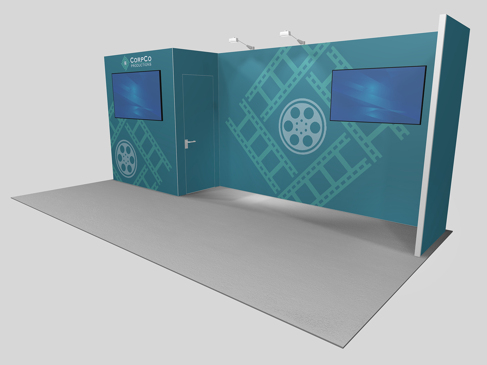 Quite often, a few custom elements added to the design can give the entire design a custom look even if it’s as simple as some colorful laminated workstations, shelves, or a reception counter. Custom laminated soffits and backlighting are also nice touches that are inexpensive and well worth the investment. As a bonus, if you re-rent the same exhibit, your second rental will most likely be less expensive, since your first rental covered the cost of those custom components.