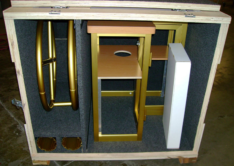 Custom Wood Crate -- Example_0If you’re envisioning a big wood box, you couldn’t be more wrong. Our custom wood crates are fabric lined and jigged to fit all the components of your display. The layers and components are labeled and cross-referenced to detailed set-up instructions, which included specific packing instructions. Many custom crates have hinged doors and individual compartments, depending on the specific design.