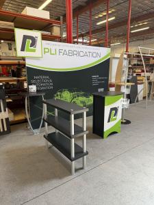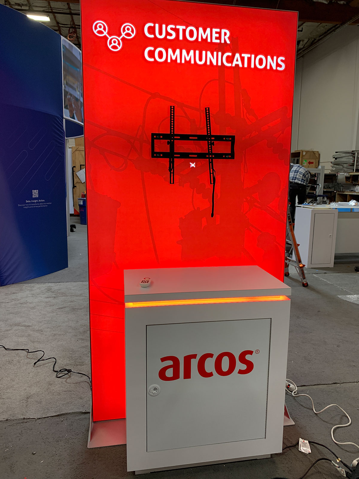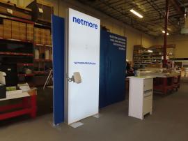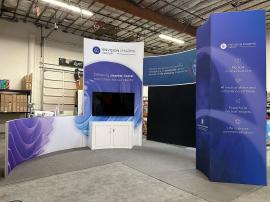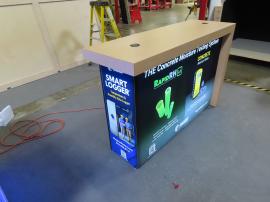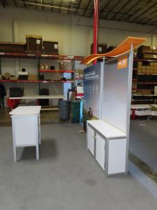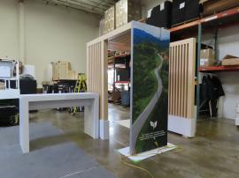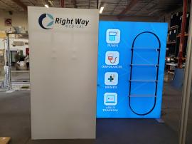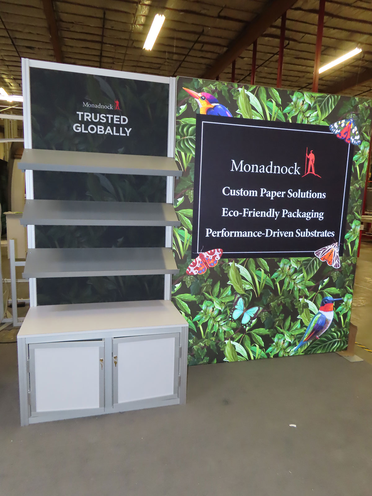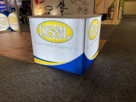 Modified ECO-2038 Sustainable Exhibit with Shelves, Locking Closet, Lightbox, SEG Fabric Graphics, Monitor Mount, and MOD-1590 Backlit Reception Counter with Locking Storage [ORD-69141]
