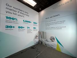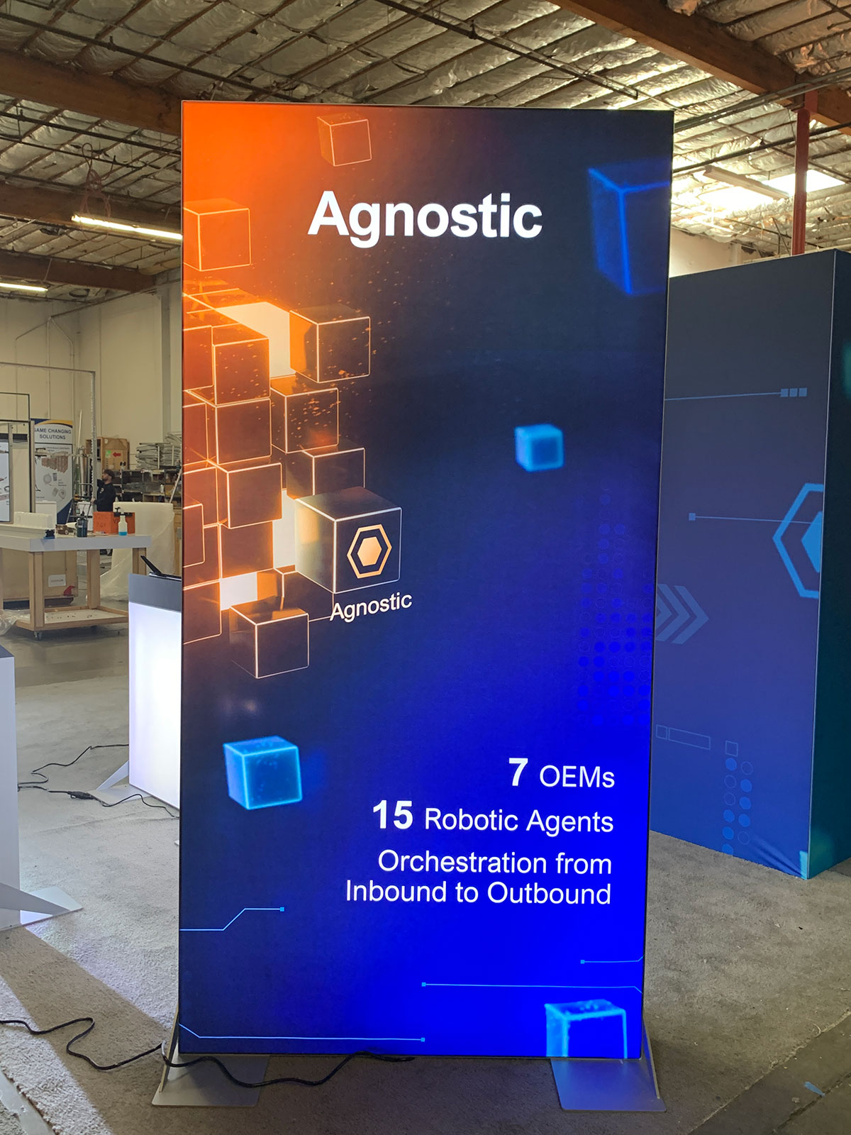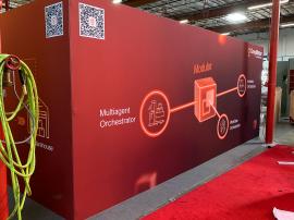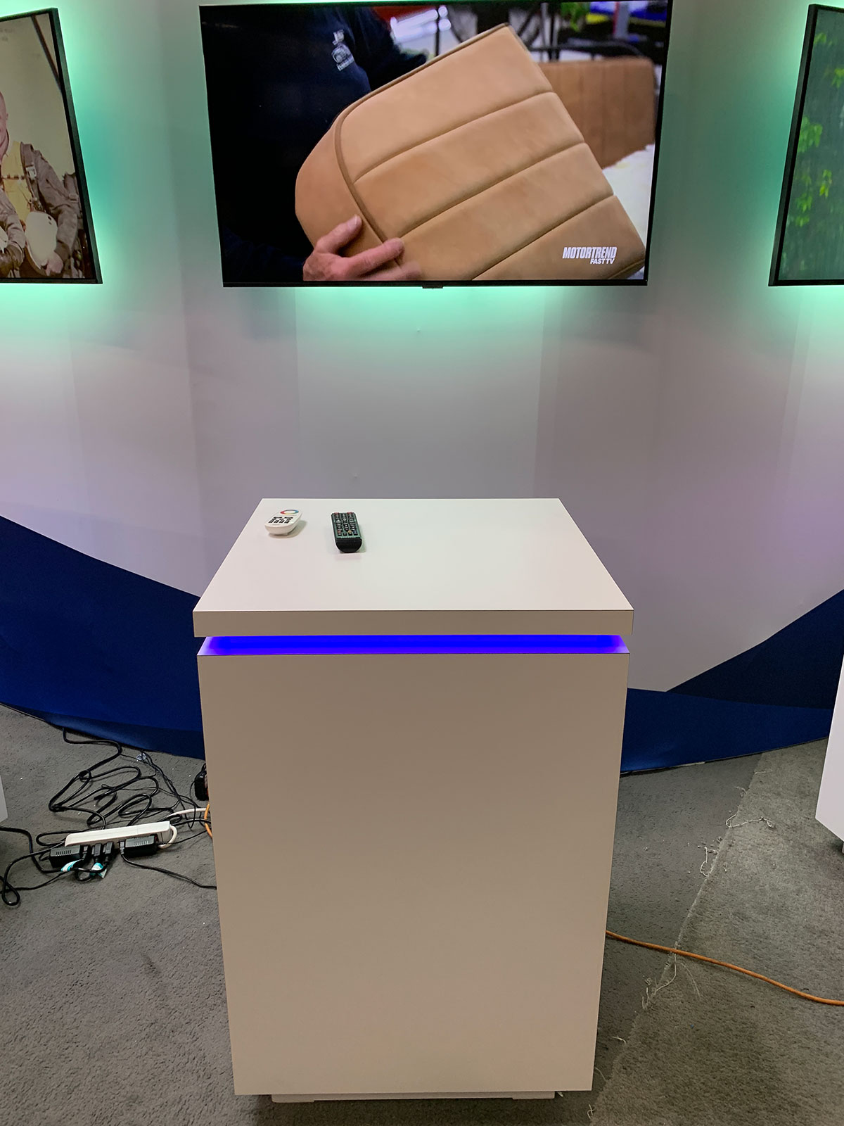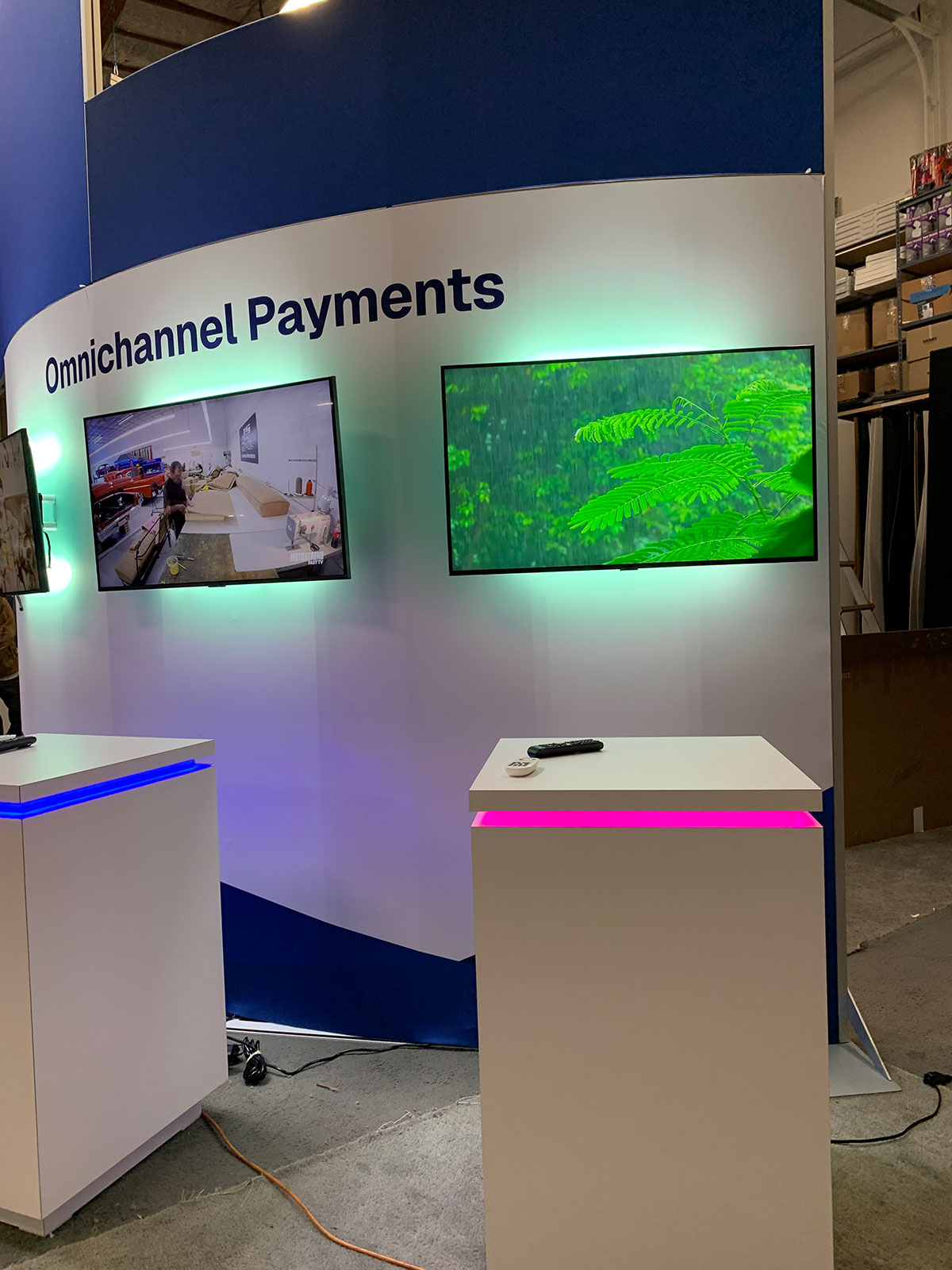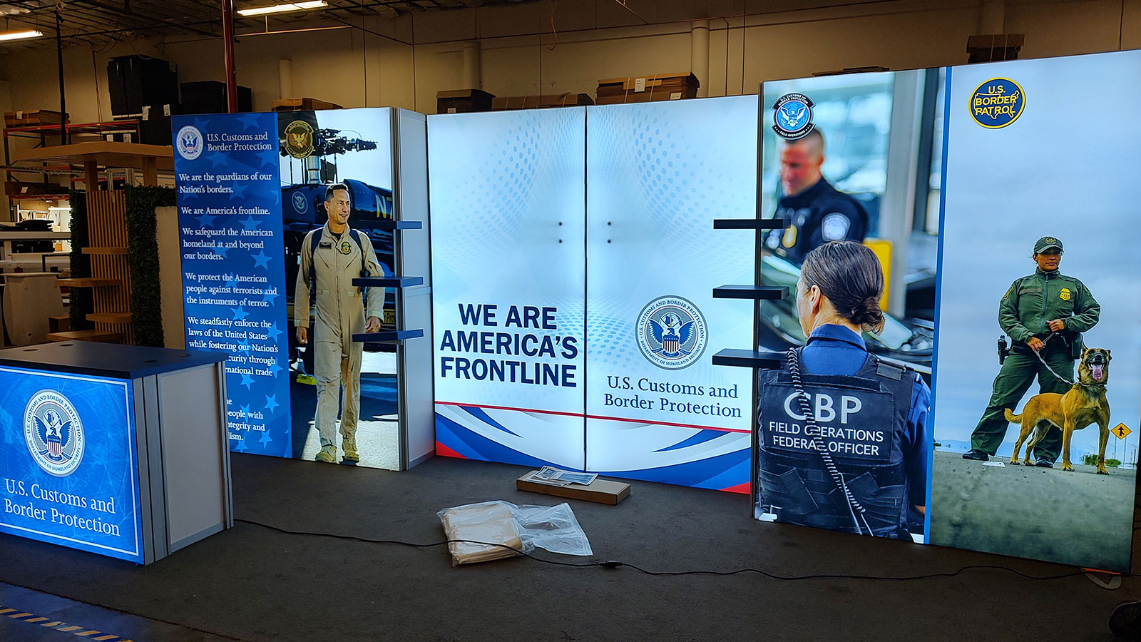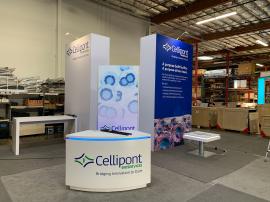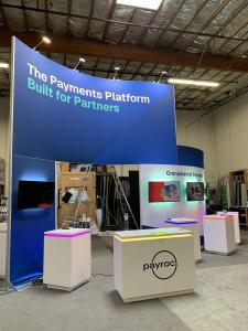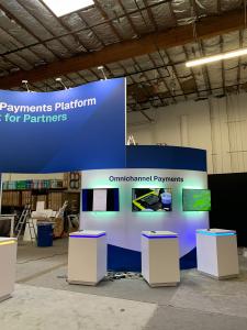 Custom Inline Exhibit with SuperNova Backlit Lightboxes, (4) Product Shelves, Storage Closet, Fabric and Direct Print Graphics, Reception Counter w/ Open Storage, and Counter w/ Locking Storage and Wireless Charging Pads Custom Inline Exhibit with SuperNova Backlit Lightboxes -- View 2 Custom Inline Exhibit with SuperNova Backlit Lightboxes -- View 3 Custom Inline Exhibit with SuperNova Backlit Lightboxes -- View 4 Custom Inline Exhibit with SuperNova Backlit Lightboxes -- View 5 Custom Inline Exhibit with SuperNova Backlit Lightboxes -- View 6