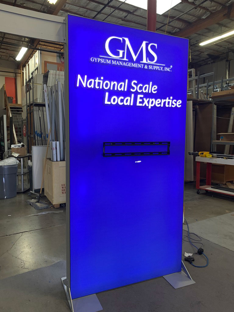 (2) Double-sided SuperNova Lightbox Monitor Stands with Monitor Mounts (96" H x 48" W). Shown w/o SEG Fabric Graphics (2) Double-sided SuperNova Lightbox Monitor Stands with Monitor Mounts (96" H x 48" W). Shown w/o SEG Fabric Graphics -- View 2 (2) Double-sided SuperNova Lightbox Monitor Stands with Monitor Mounts (96" H x 48" W). Shown w/o SEG Fabric Graphics -- View 3