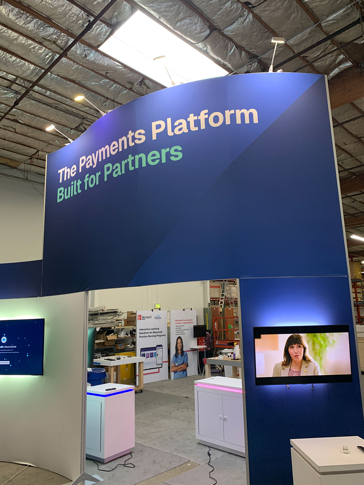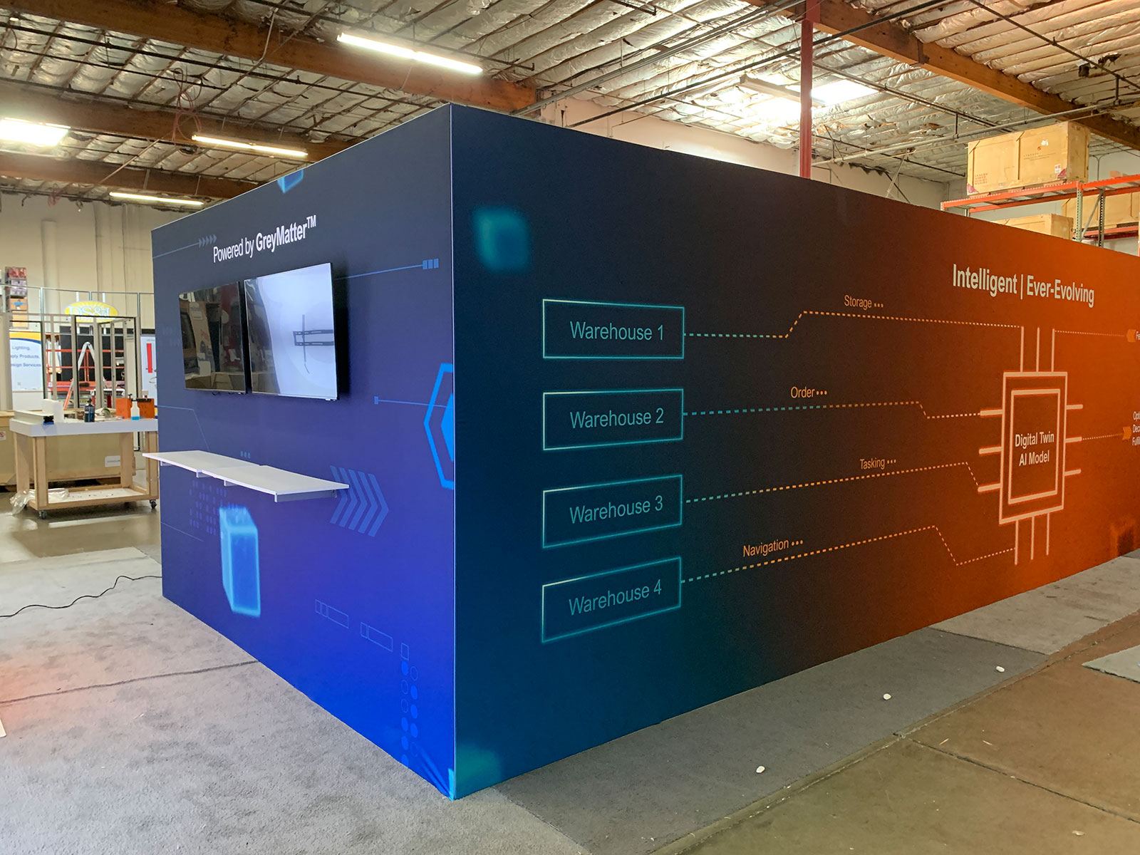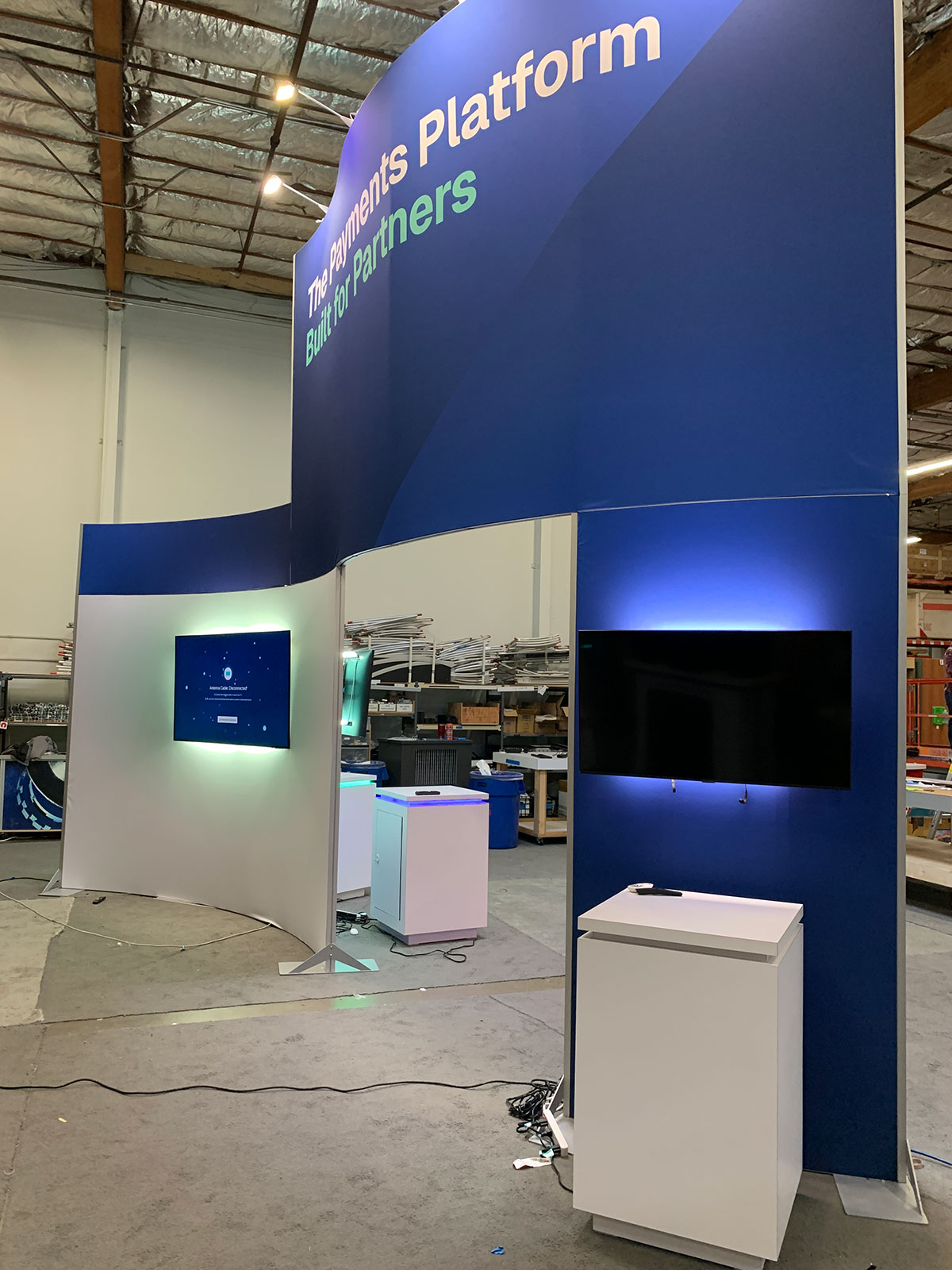 Custom Gravitee Modular Inline Exhibit with SEG Fabric Graphics, (3) Monitor Mounts, Closet Storage, (2) MOD-1509 Backlit Counter with Locking Storage, and (1) Custom Backlit Counter with Wireless Charging Pads Custom Gravitee Modular Inline Exhibit with SEG Fabric Graphics, (3) Monitor Mounts, Closet Storage, (2) MOD-1509 Backlit Counter with Locking Storage, and (1) Custom Backlit Counter with Wireless Charging Pads -- View 2 Custom Gravitee Modular Inline Exhibit with SEG Fabric Graphics, (3) Monitor Mounts, Closet Storage, (2) MOD-1509 Backlit Counter with Locking Storage, and (1) Custom Backlit Counter with Wireless Charging Pads -- View 3 Custom Gravitee Modular Inline Exhibit with SEG Fabric Graphics, (3) Monitor Mounts, Closet Storage, (2) MOD-1509 Backlit Counter with Locking Storage, and (1) Custom Backlit Counter with Wireless Charging Pads -- View 4
