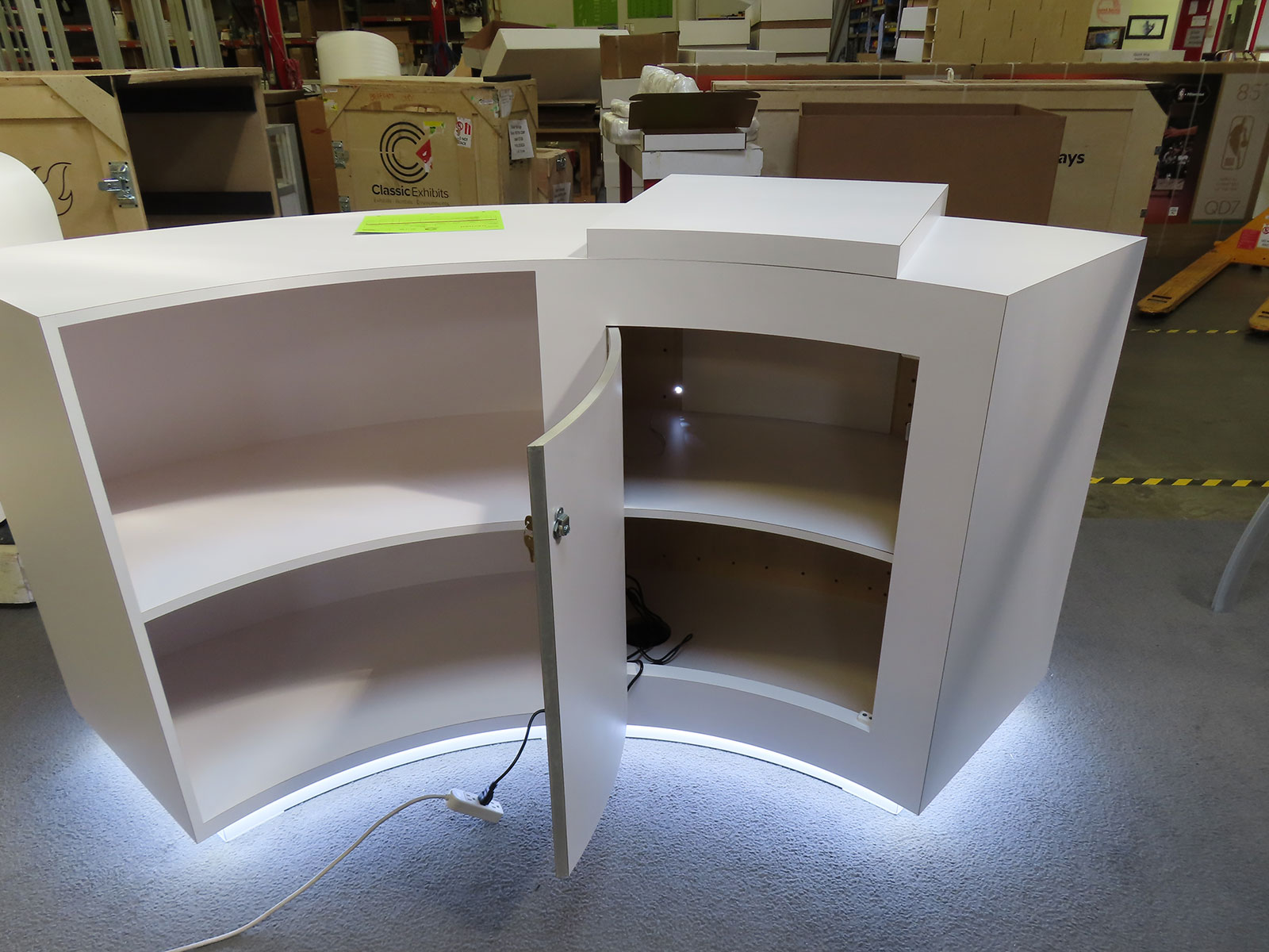 MOD-1588 Reception Counter with RGB LED Lit Plex Top, Push-thru Backlit Logo, Accent Lights, and Locking Storage MOD-1588 Reception Counter with RGB LED Lit Plex Top, Push-thru Backlit Logo, Accent Lights, and Locking Storage -- View 2 MOD-1588 Reception Counter with RGB LED Lit Plex Top, Push-thru Backlit Logo, Accent Lights, and Locking Storage -- View 3