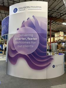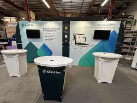 SYK-1010 Symphony Portable Display with SEG Tension Fabric Graphic, Backwall Workstaion Counters, Wireless Charging Pads, Direct Print Graphics, SYM-408 Counter with Locking Storage, and (2) LED Stem Lights [ORD-68686]