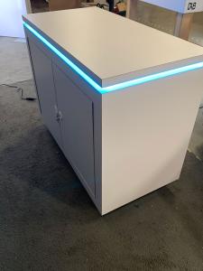 Custom Product Display Counter with Backlit Logo and LED Accent Lights, Locking Storage, and Plex Display Case [ORD-69136]