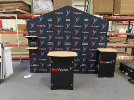 SYK-1024 Symphony Portable Display with SEG Fabric Graphic, MOD-1462 Wireless Bistro Charging Table, and MOD-1701c Backlit Counter with Locking Storage [ORD-69285]
