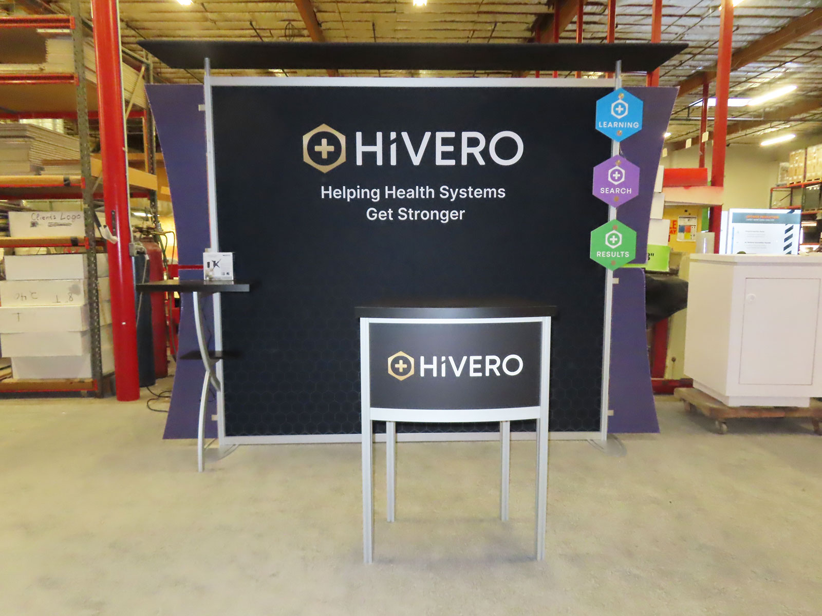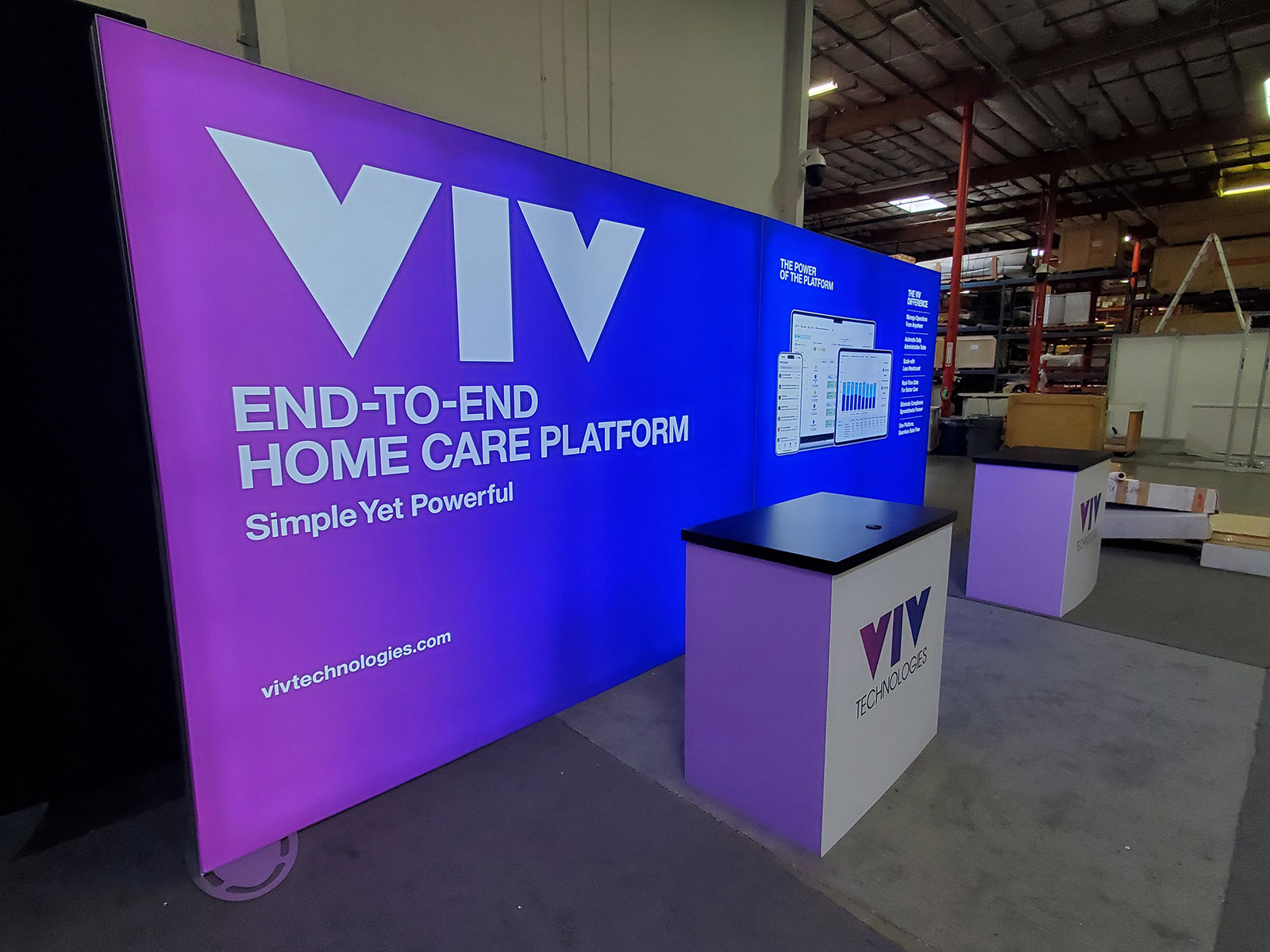 Modified VK-1340 Custom Exhibit with Backlit SEG Fabric Graphic and MOD-1563 Counter with LED Accent Lights and Locking Storage Modified VK-1340 Custom Exhibit with Backlit SEG Fabric Graphic and MOD-1563 Counter with LED Accent Lights and Locking Storage -- View 2